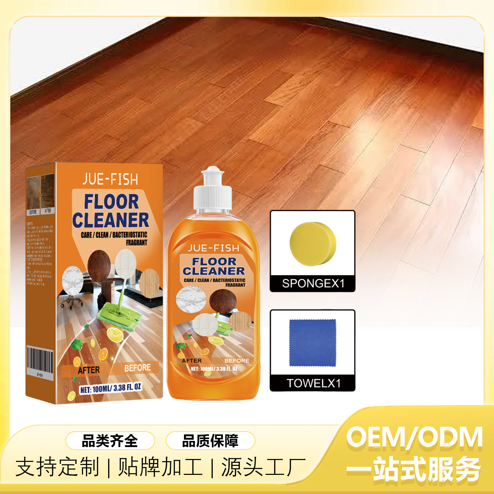 Очиститель пола Jue-Fish Сильная дезактивация Удаление накипи Очистка деревянного пола Полировка Осветляющий очиститель плитки