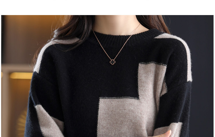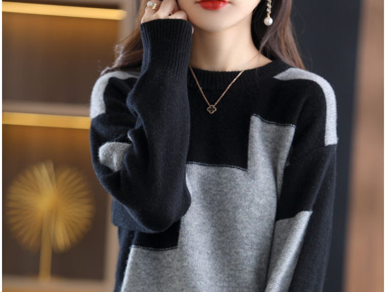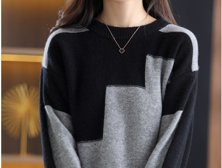 Женский новый весенне-осенний вязаный топ с цветными блоками и длинными рукавами 2025 года, свободный женский свитер в корейском стиле с цветными блоками.