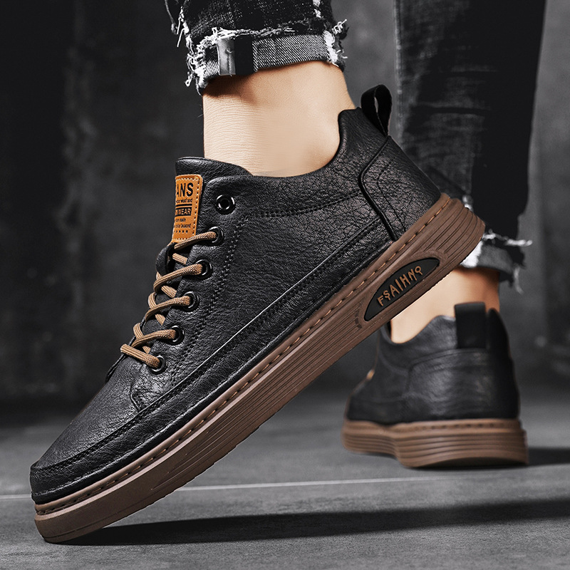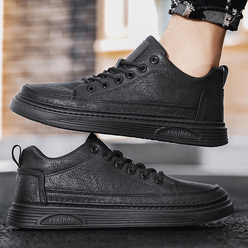 Осенняя мужская обувь, новые черные туфли, мужская повседневная кожаная обувь, однотонная Рабочая кожаная обувь на толстой подошве