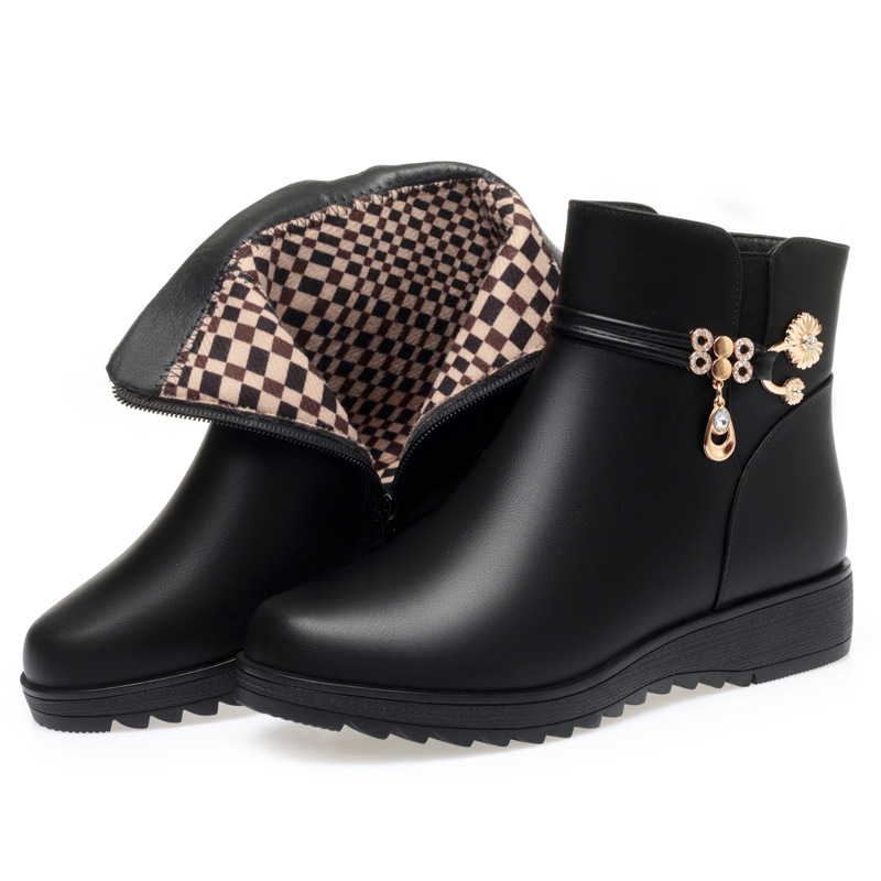 Ботильоны на толстом каблуке, женские осенне-зимние ботинки, обувь для мам, обувь из мягкой кожи, хлопковая обувь на мягкой подошве для среднего и пожилого возраста, удобная кожаная обувь на флисовой подкладке