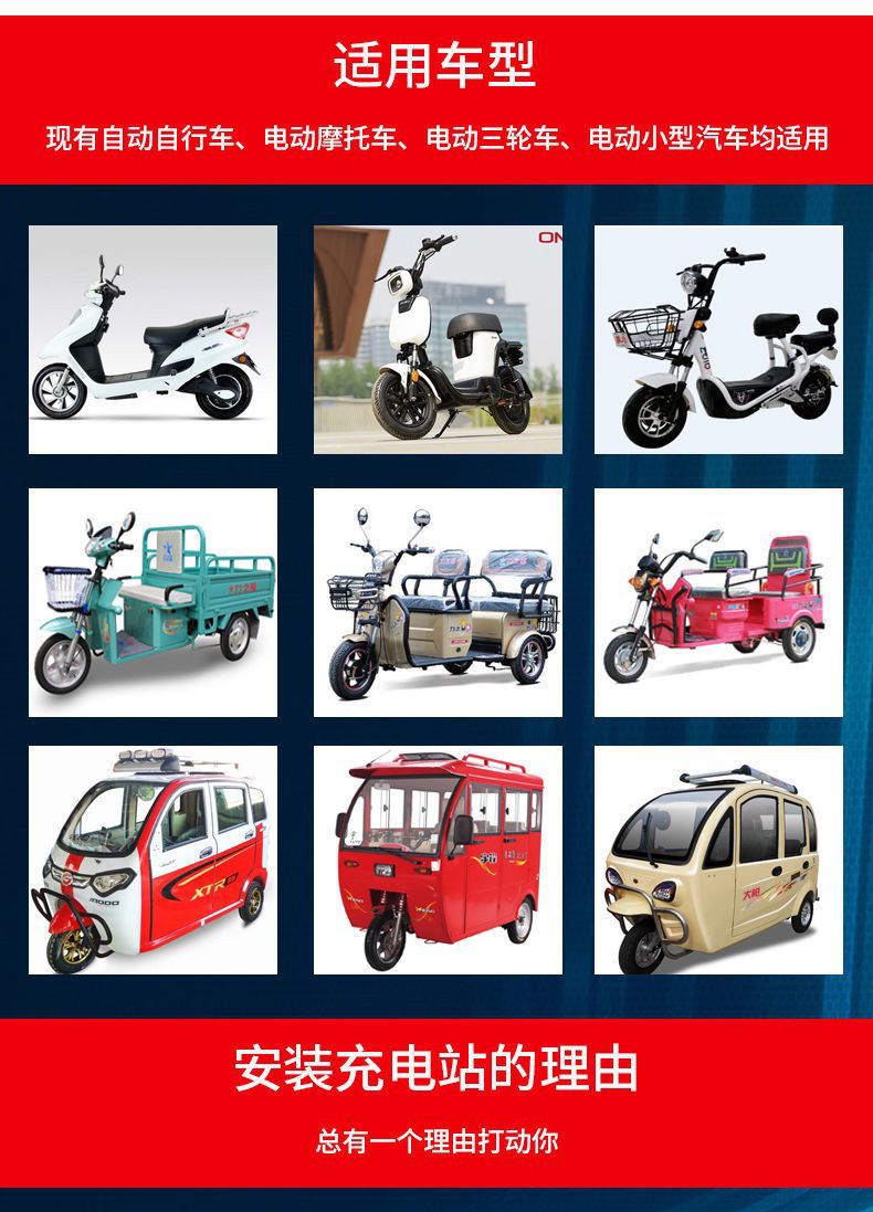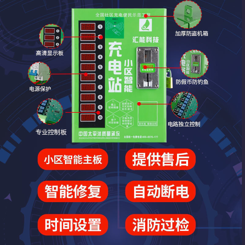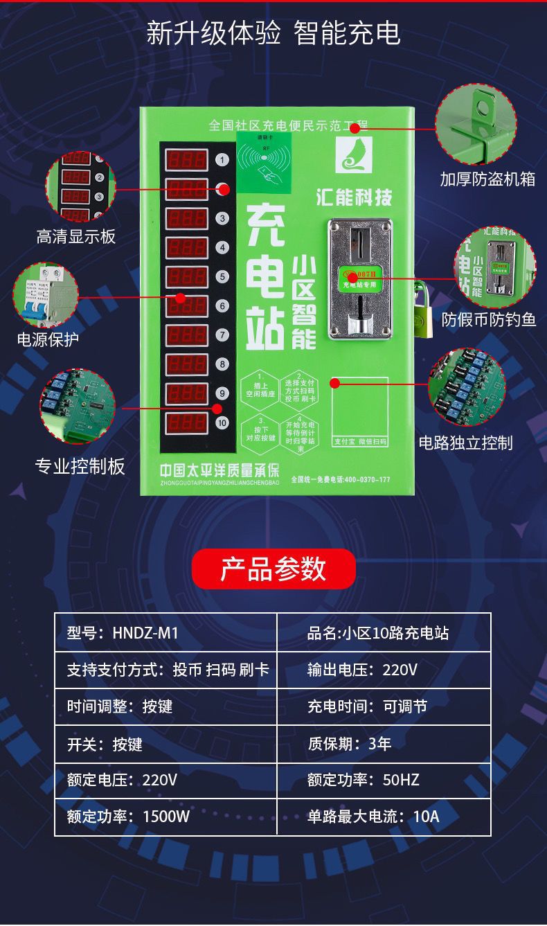 Умная зарядная станция 10-полосная медленная зарядная карта-считыватель монет Код Коммерческий подвесной трехколесный аккумулятор Автомобиль Электрическая зарядная свая