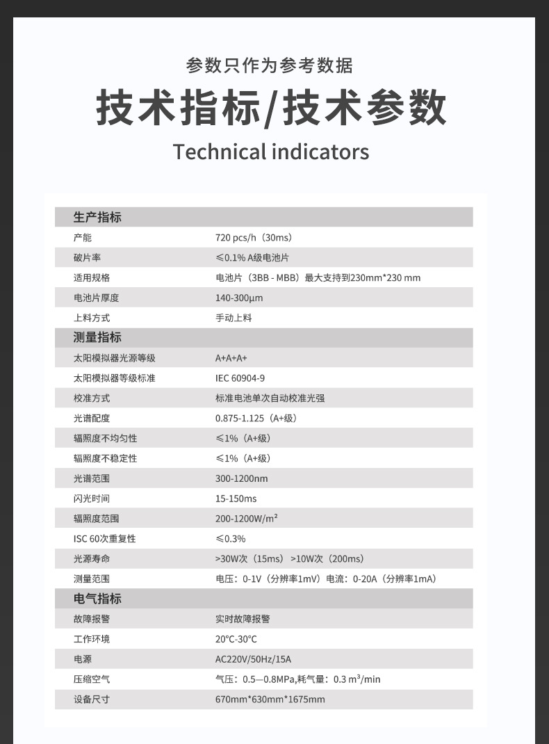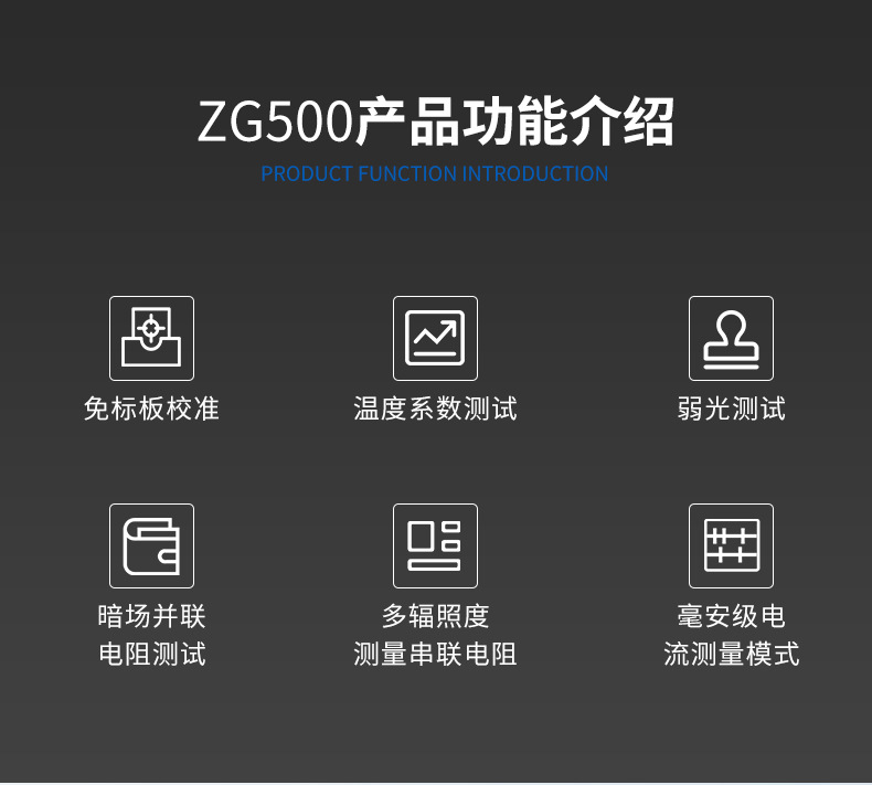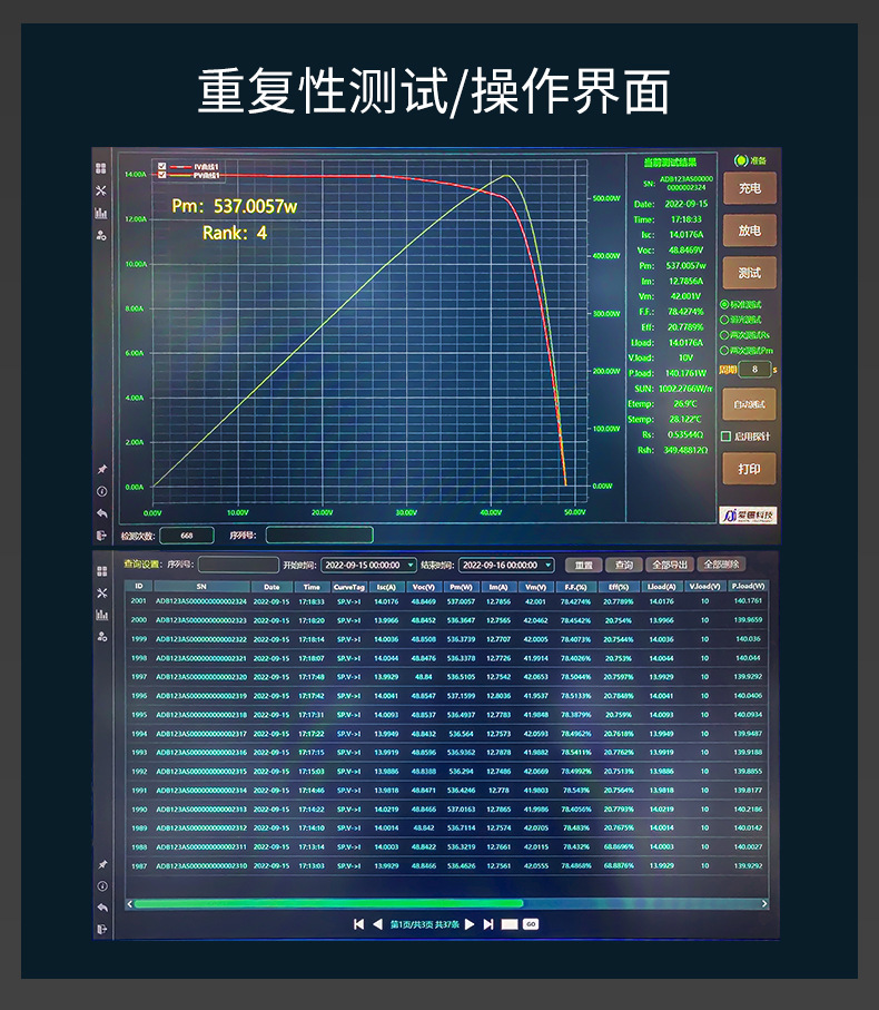 Он подходит для тестирования и записи результатов и экспорта параметров электрических характеристик компонентов солнечных батарей из кристаллического кремния, пленочных батарей и различных компонентов солнечных батарей.
