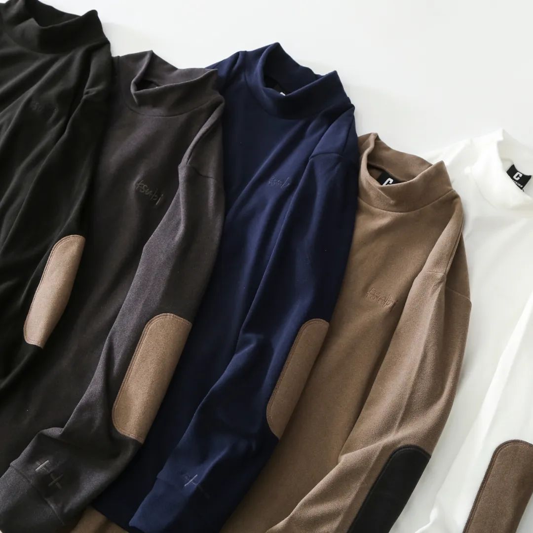 Кофе-половина высокий воротник бархат патч Длинные рукава; Белый-Якобы Воротник Бархат Патч С Длинным Рукавом; Черный-половина высокий воротник бархат патч длинный рукав; Темно-серый-полу-высокий воротник бархат патч Длинные рукава; Темно-синий-полу-высокий воротник бархат патч Длинные рукава