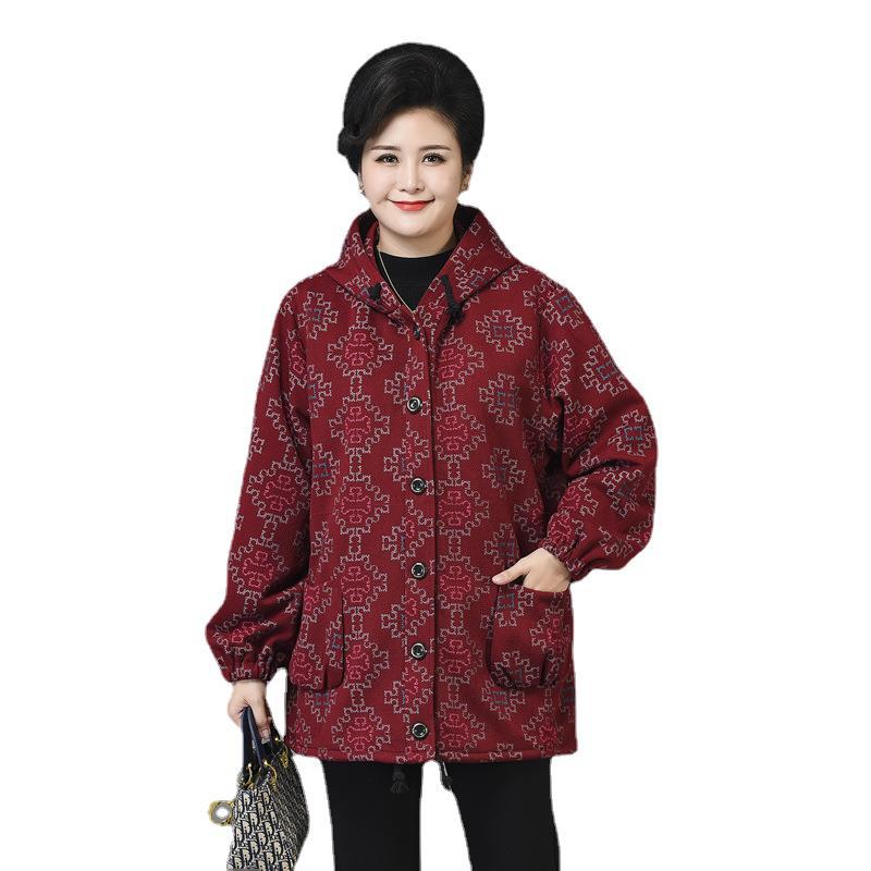 Осеннее пальто для мам с китайским узлом, плюс новый толстый топ с длинными рукавами для женщин среднего возраста, весенне-осеннее пальто в западном стиле для пожилых людей