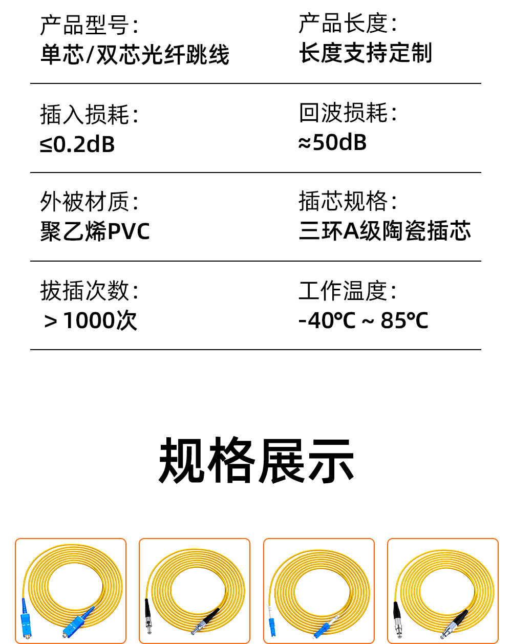 Одномодовая одножильная перемычка SC-SC; Одномодовая одножильная перемычка SC-FC; Одномодовая одножильная перемычка SC-LC; Одномодовая одножильная перемычка SC-ST; Одномодовая одножильная перемычка FC-FC; Одномодовая одножильная перемычка FC-LC; Одномодовая одножильная перемычка FC-ST; Одномодовая одножильная перемычка LC-LC; Одномодовое одножильное оптическое волокно LC-ST; Одномодовая одножильная перемычка ST-ST; Перемычка SC-SC 2.0 (тонкий провод); Одномодовая двухжильная перемычка SC-SC; Одномодовая двухжильная перемычка SC-FC; Одномодовая двухжильная перемычка SC-LC; Двухжильная однорежимная перемычка SC-ST; Одномодовая двухжильная перемычка FC-FC; Одномодовая двухжильная перемычка FC-LC; Одномодовая двухжильная перемычка FC-ST; Одномодовая двухжильная перемычка LC-LC; Одномодовая двухжильная перемычка LC-ST; Двухжильная однорежимная перемычка ST-ST; Перемычка SC/UPC с одной головкой 0,9 мм; Перемычка FC/UPC с одной головкой 0,9 мм; Перемычка LC/UPC с одной головкой 0,9 мм