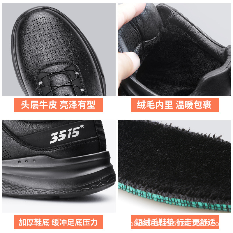 Утолщенная теплая хлопковая обувь Jihua 3515 Qiangren, зимняя мужская повседневная обувь из натуральной кожи на флисовой подкладке, уличная нескользящая обувь на 2022 год