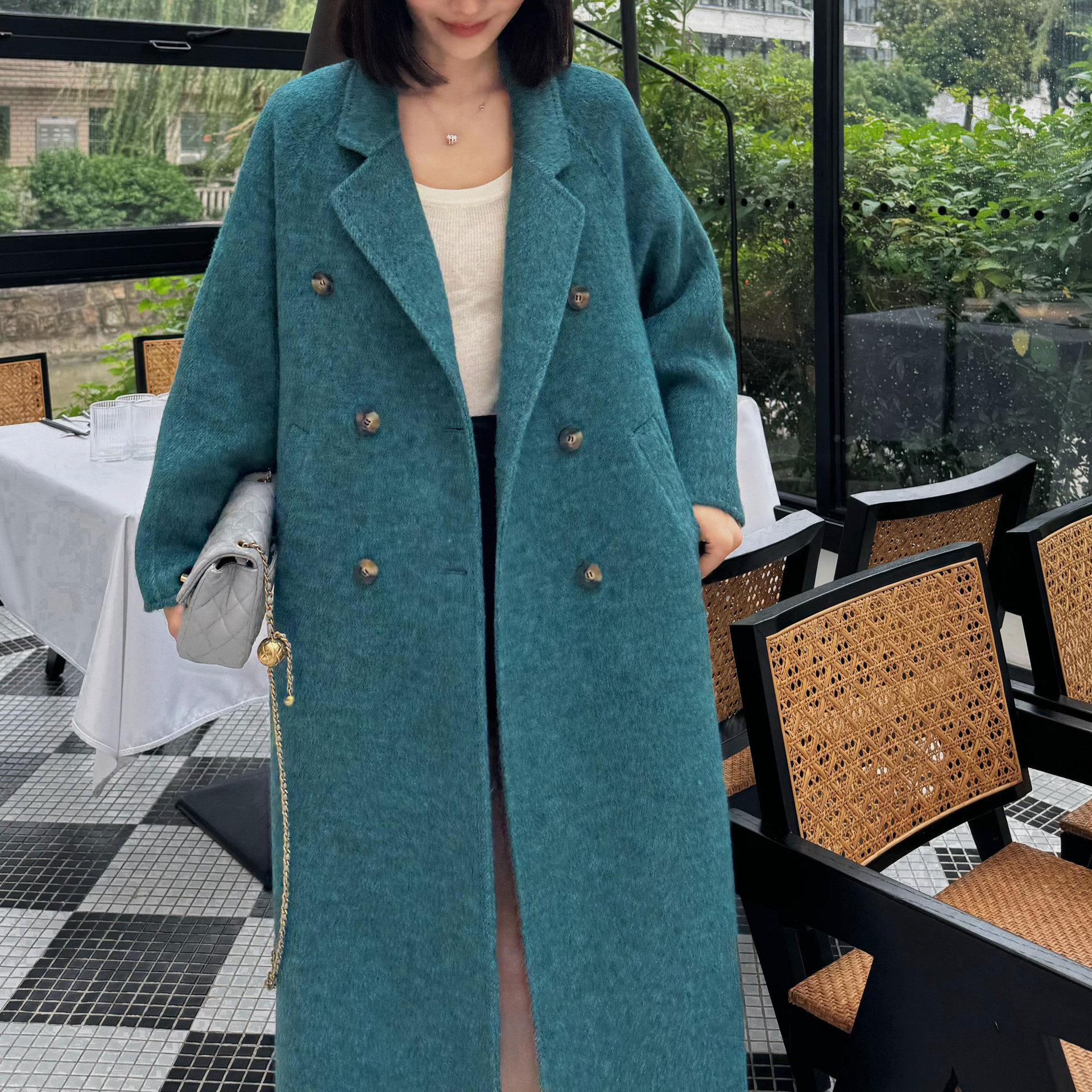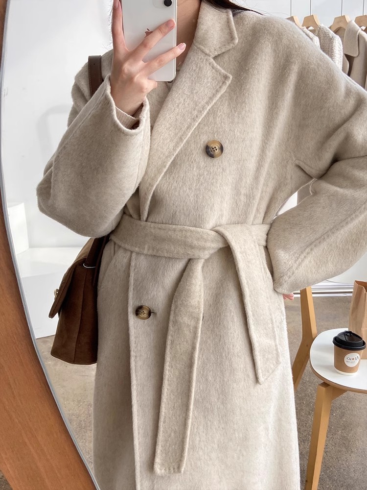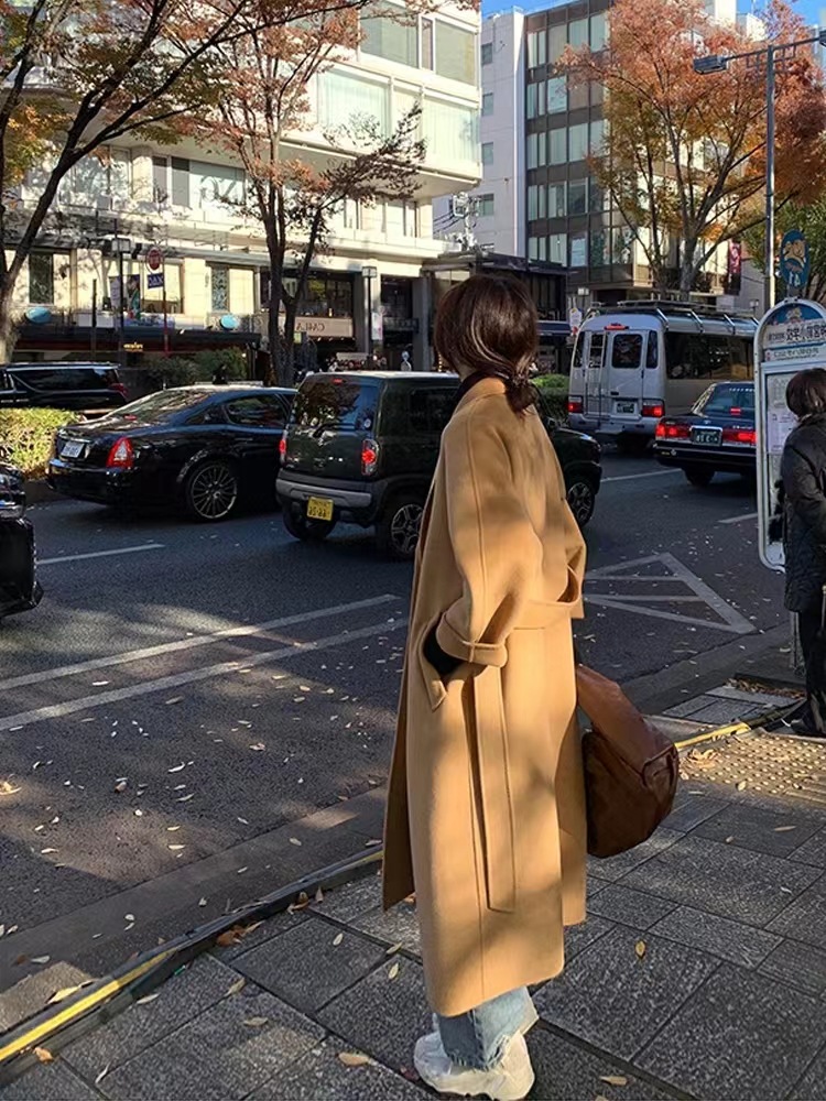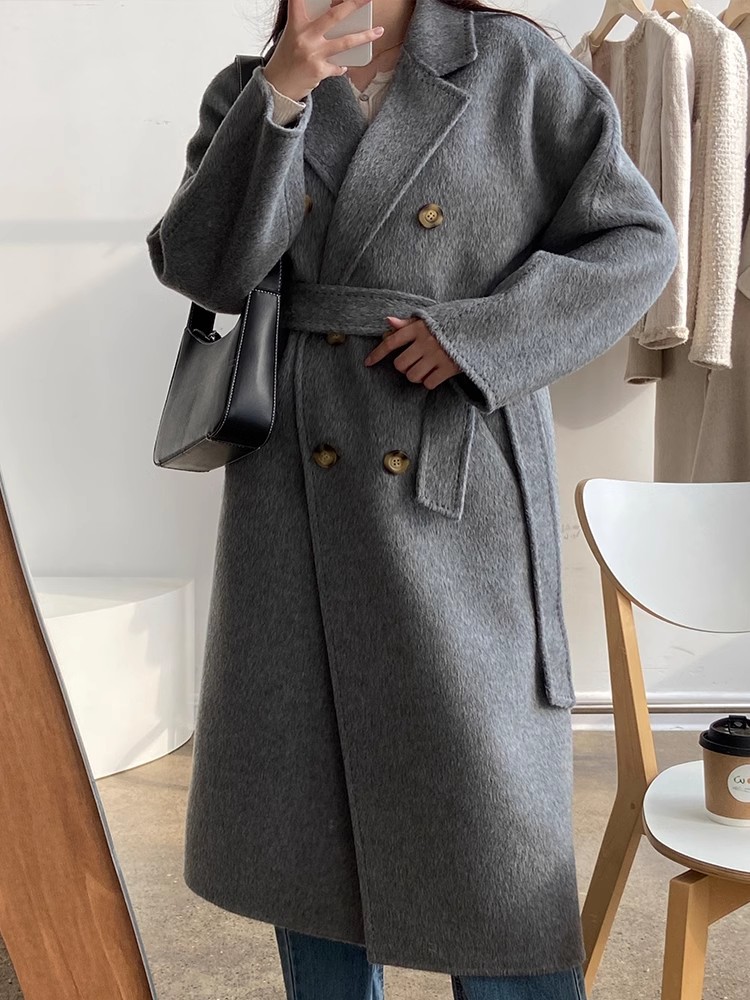 Двустороннее шерстяное пальто, женское двубортное приталенное черное шерстяное пальто в Корейском стиле с поясом для больших размеров, осень и зима