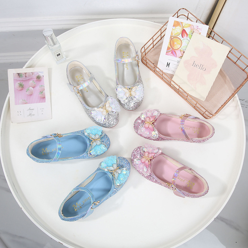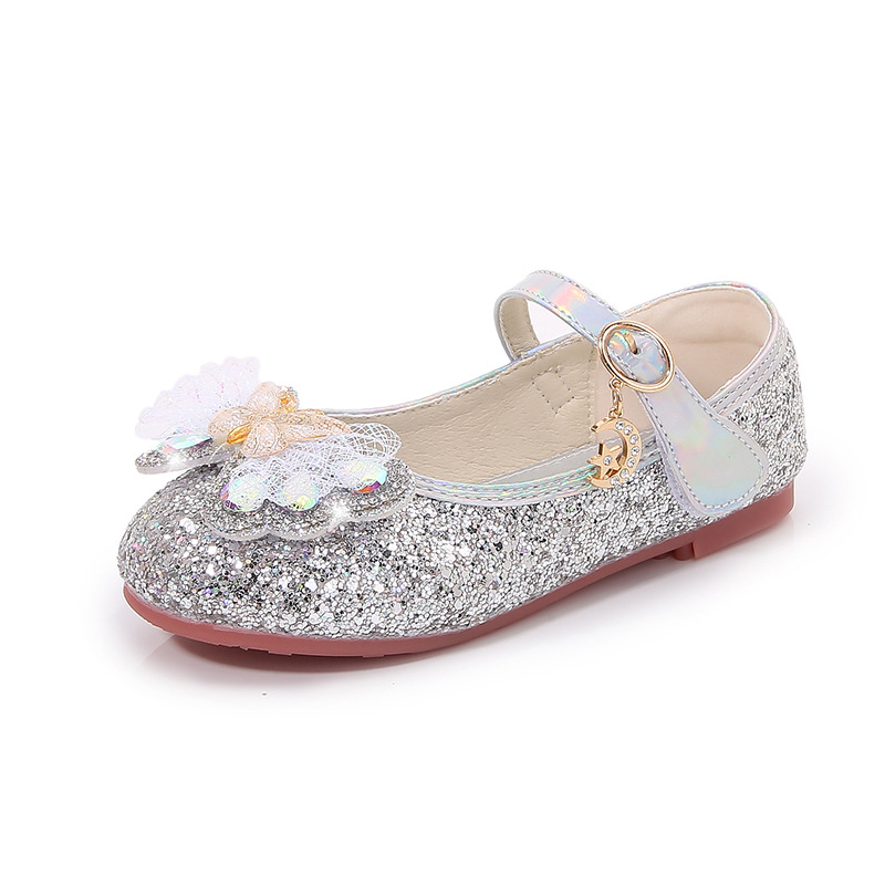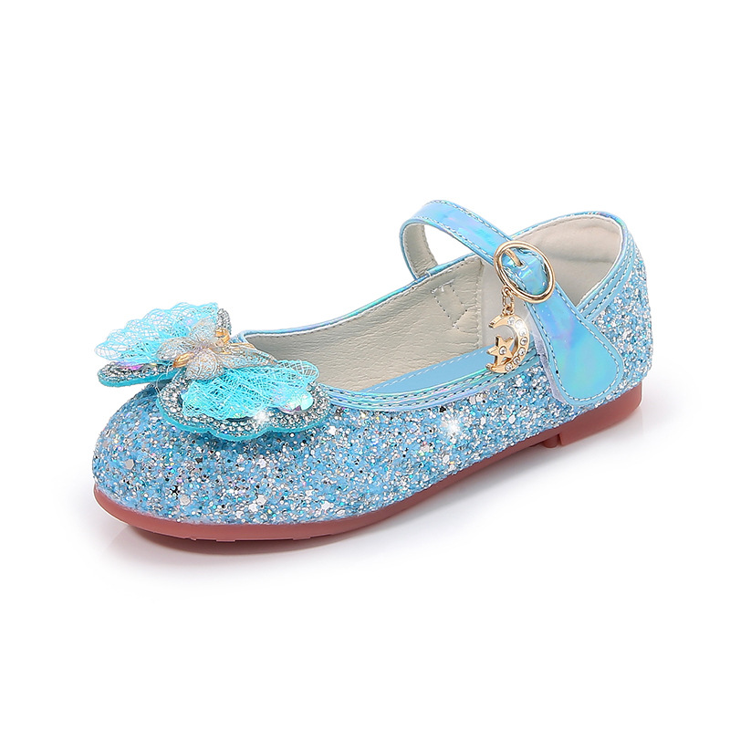 Розовые туфли с блеском с бантом на плоской подошве для девочек 2024 весна и осень новые туфли принцессы Айши маленькие кожаные туфли