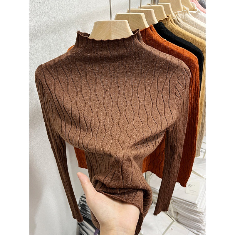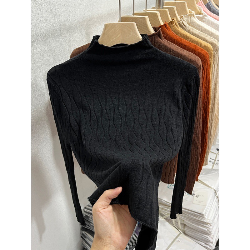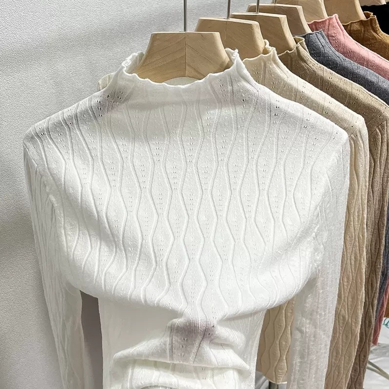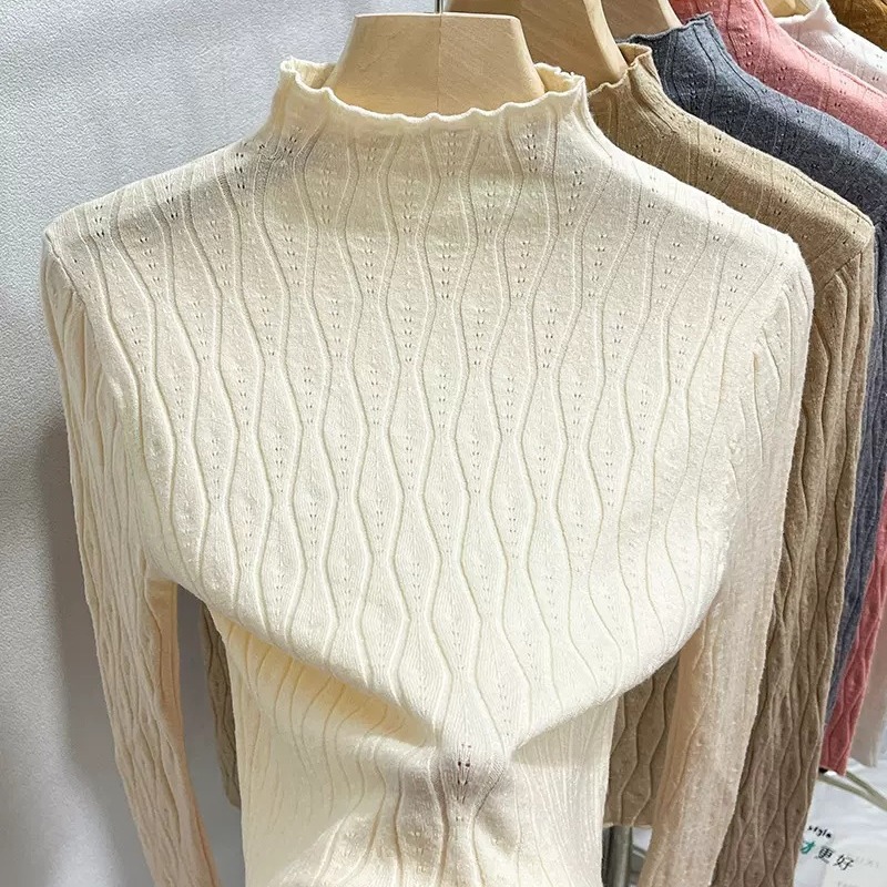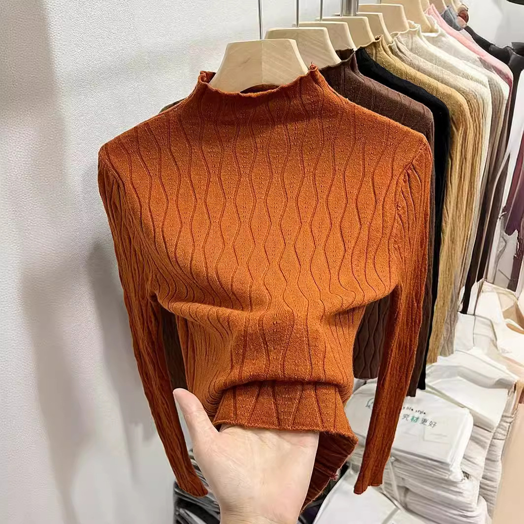 Женский осенне-зимний стильный трикотажный топ с полувысоким воротником, новинка осени 2025 года, модный внутренний свитер для женщин.