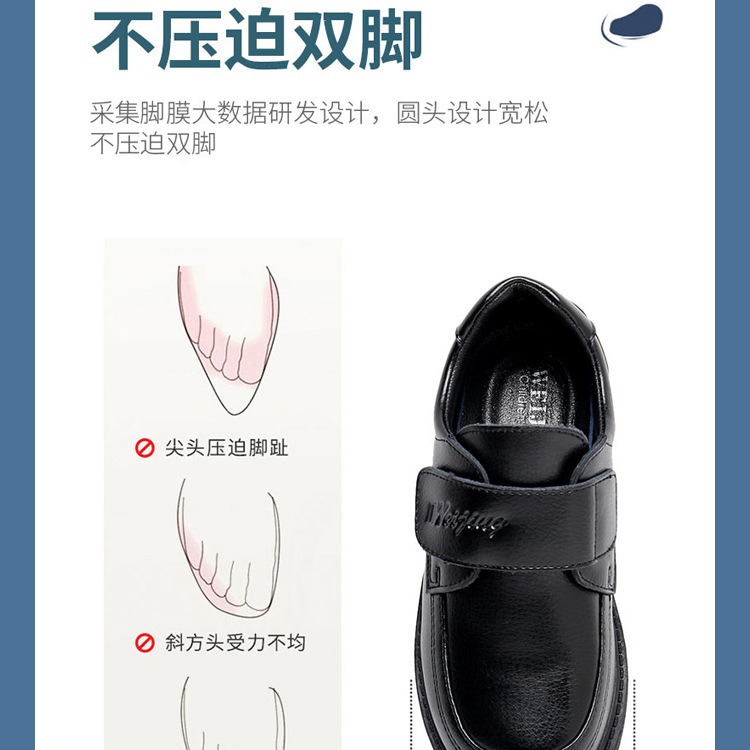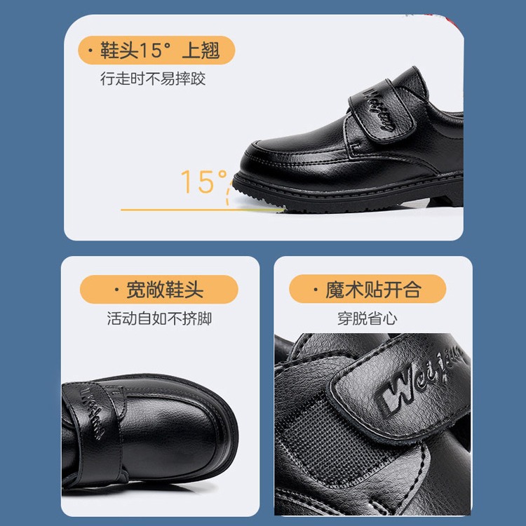 Черные кожаные туфли Weijing для мальчиков, натуральная кожа, мягкая подошва, студенческая обувь для выступлений в британском стиле, новинка весны и осени 2024, детская обувь