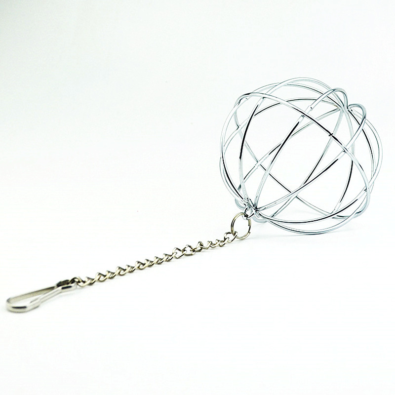 特色:铁球式设计,附挂铁链钩,可挂在笼内,供小动物发泄情绪,抒解压力。因本品中空,可在内部塞入牧,让兔兔找牧吃的另番生活乐趣。边晃动边吃,乐在其中。悬挂式设计,有效避免兔子浪费牧,培养小宠成为乖宝宝。