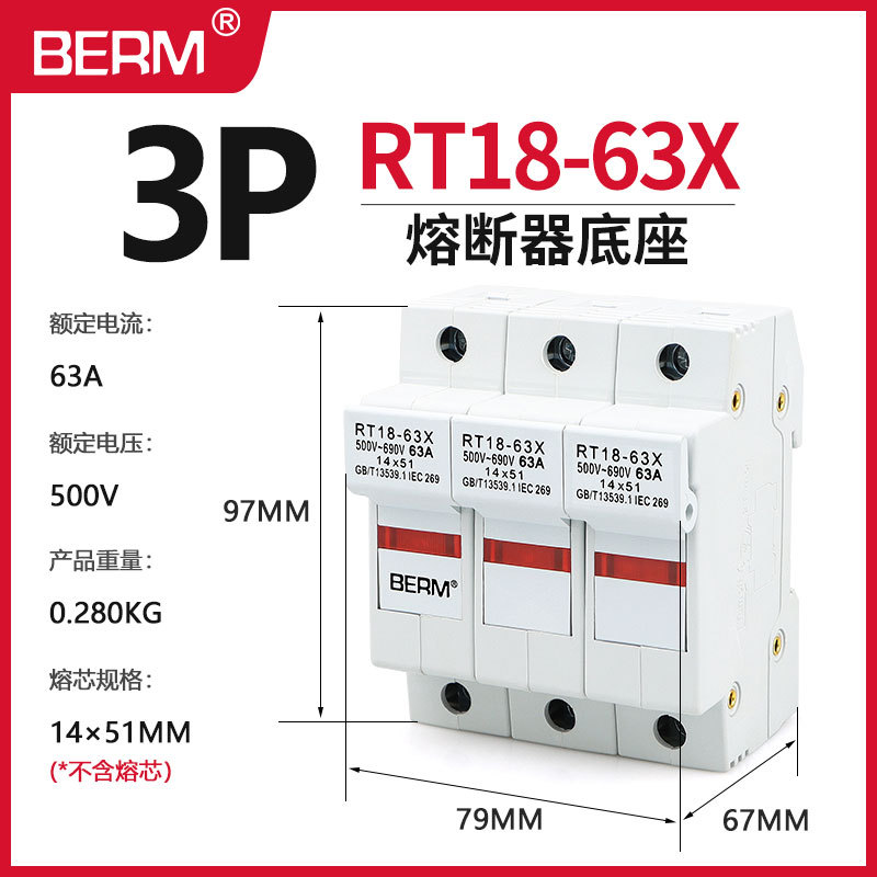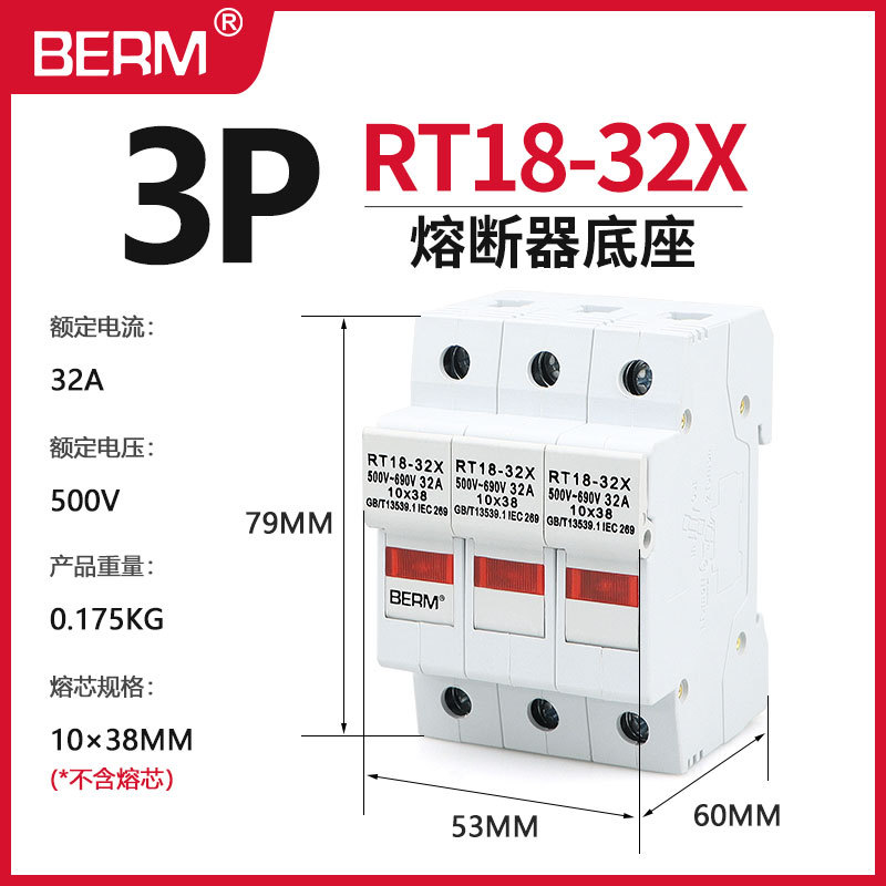 Основание предохранителя Belmei RT18-32X 63X держатель сердечника предохранителя для рельсового монтажа 1P2P3P