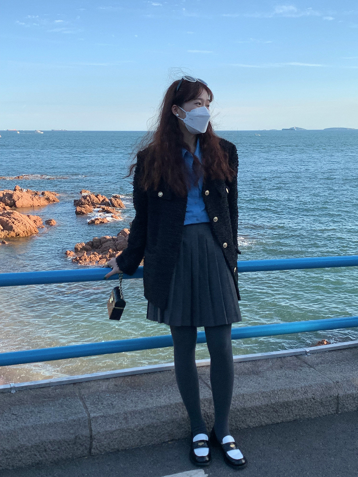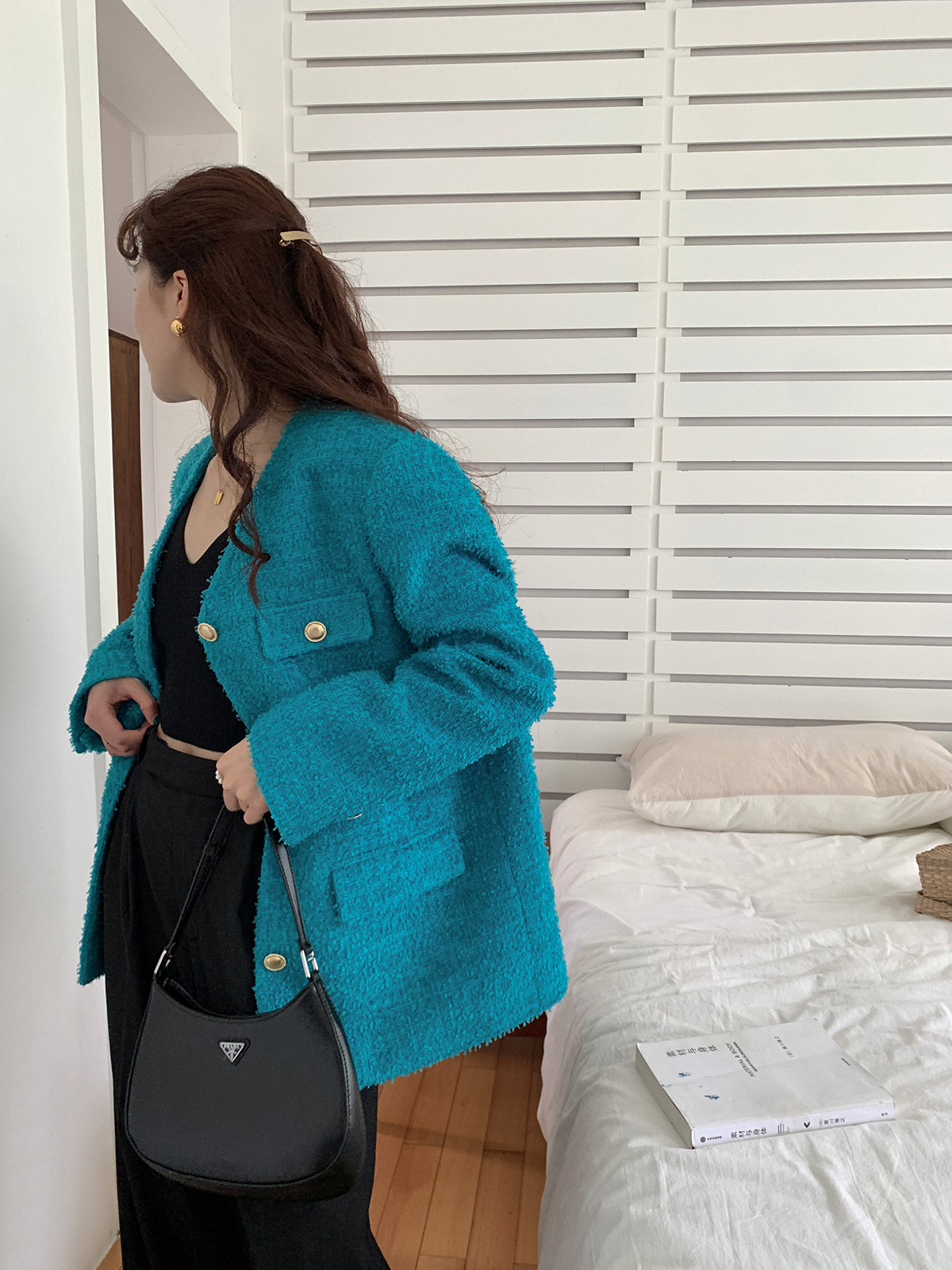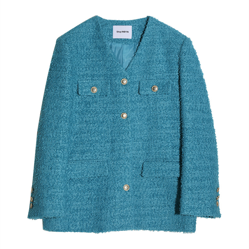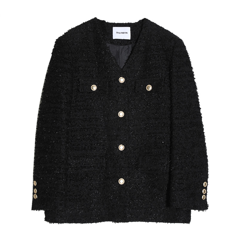 Женский однобортный твидовый Топ Eun Ou inbyin в Корейском стиле с V-образным вырезом, пальто в стиле Шанель, Осень-зима 2022