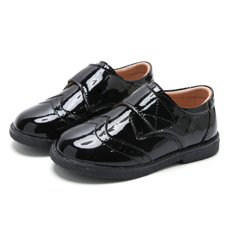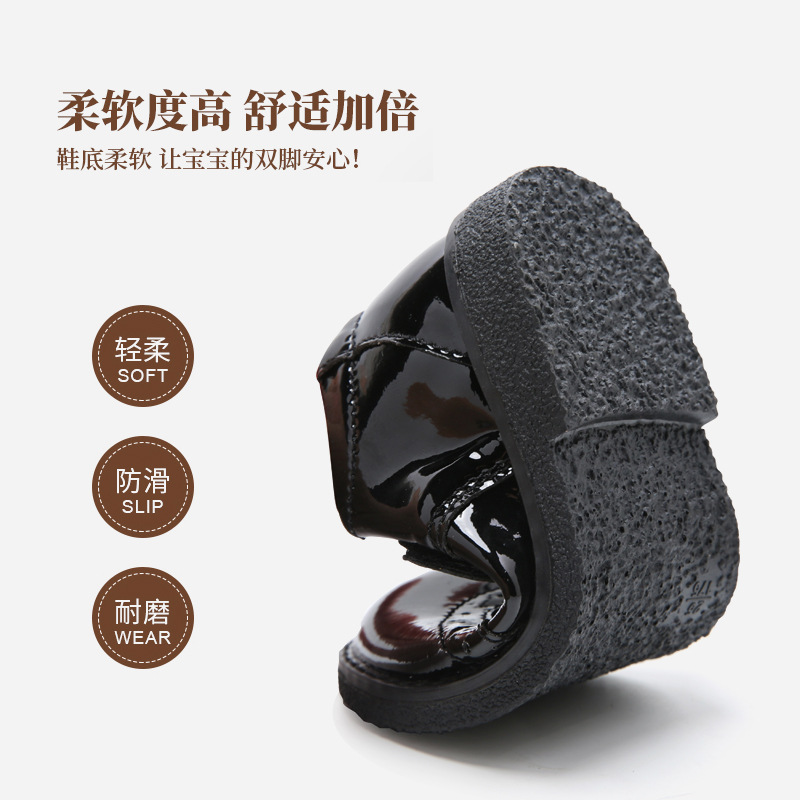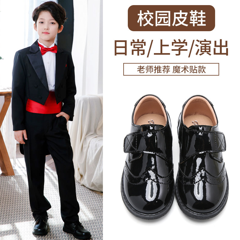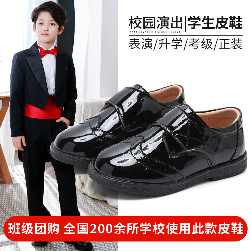 Детская обувь Кожаная обувь для мальчиков Детская обувь для студентов Черная обувь для выступлений в британском стиле с круглым носком и мягкой подошвой Обувь для выступлений Брокская обувь