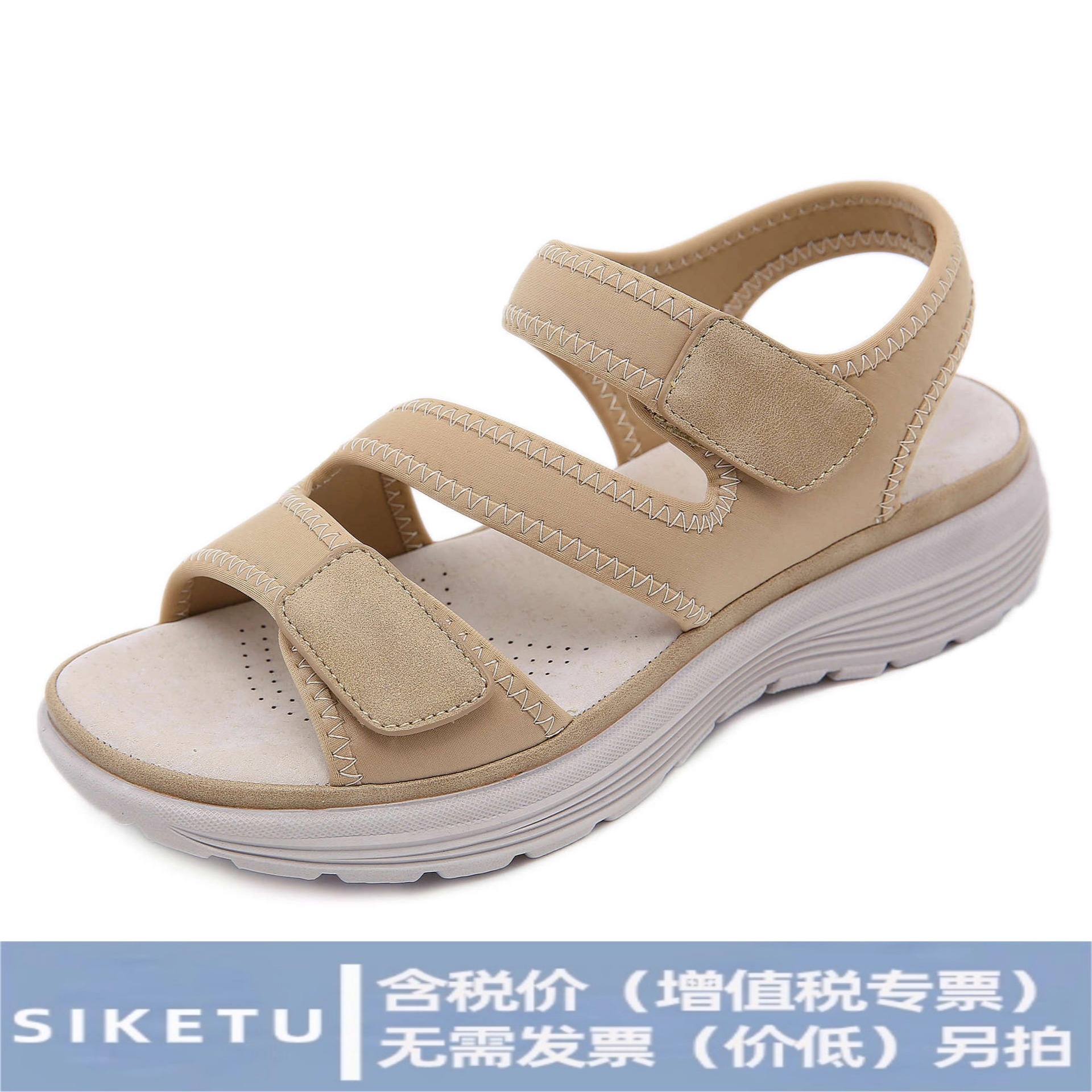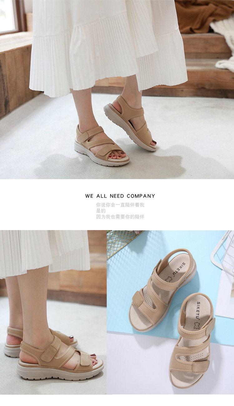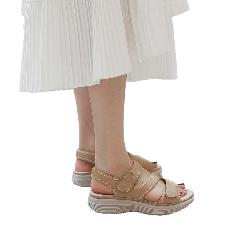 Лето 2025, новые стильные женские сандалии из натуральной кожи, спортивные туфли на танкетке, легкие женские тапочки большого размера на липучке, Прямая доставка