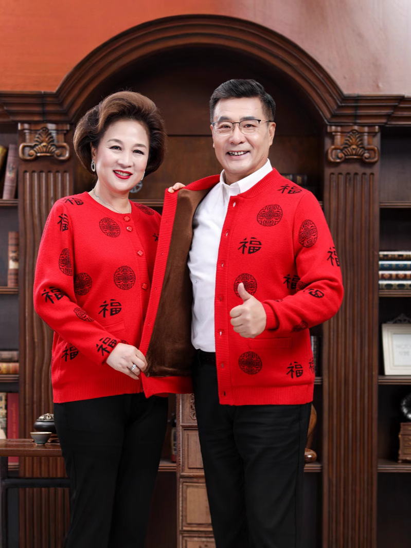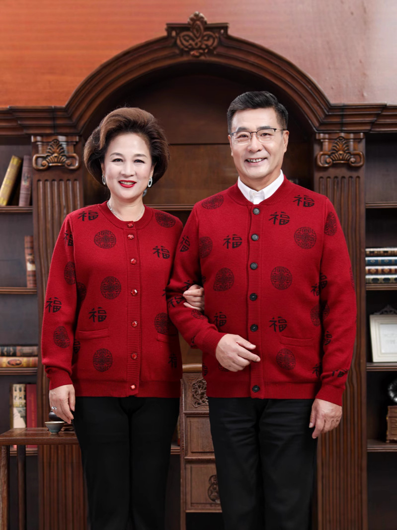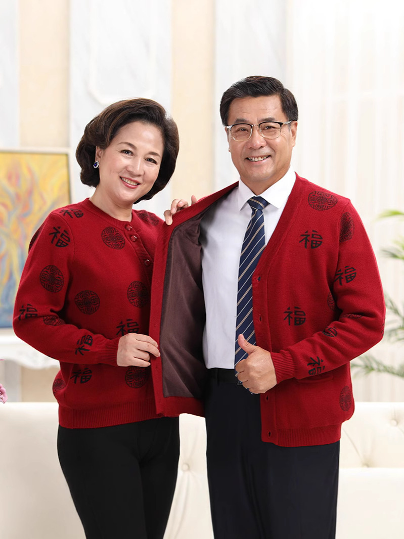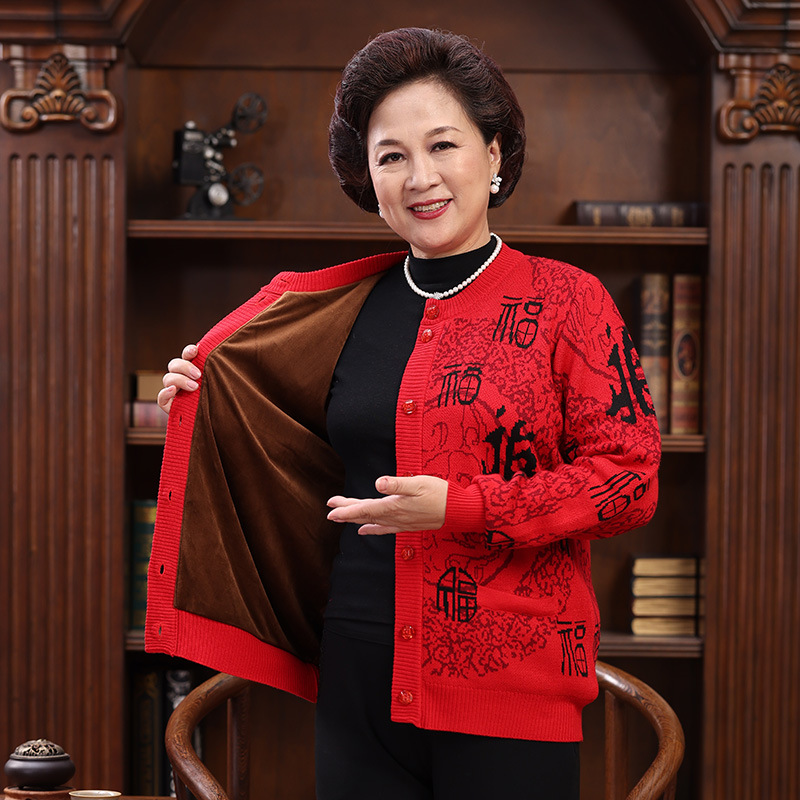 Шерстяные свитера для людей среднего и пожилого возраста, свитера для родителей, парные куртки, кардиганы, вязаные свитера с символикой счастья, на флисовой подкладке, в стиле для мамы