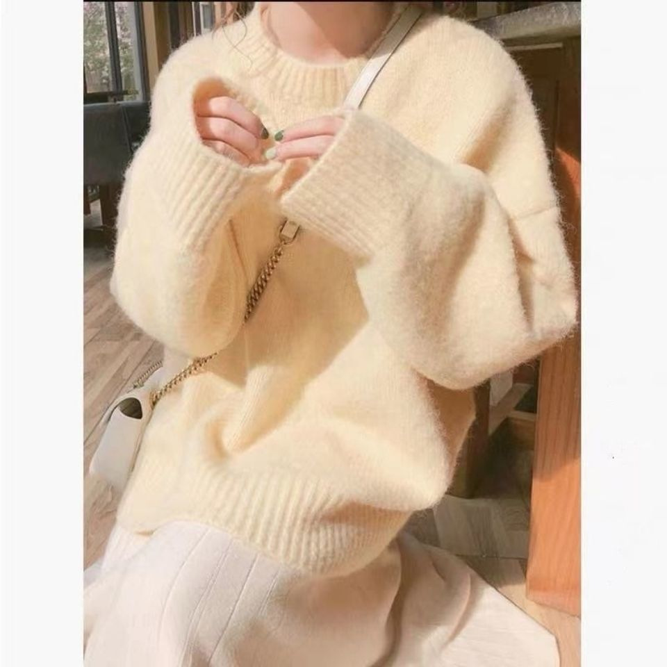 Однотонный мягкий клейкий пуловер ленивого стиля ленивый свитер, осень и зима Новый свободный всеохватывающий толстый свитер с круглым вырезом, верхняя одежда