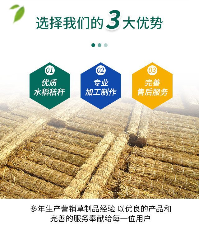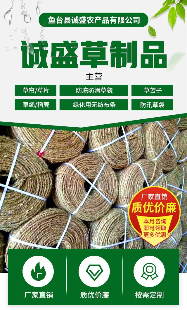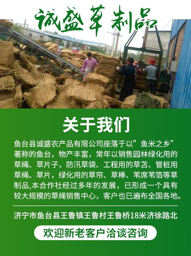 本公司生产草帘 草苫 防滑防汛草袋草垫 草绳等稻草编制品,产品尺寸规格可按需定制,本店所标价格为参考价格,具体价格及运费请先咨询客服再去下单,私自下单者不予发货。