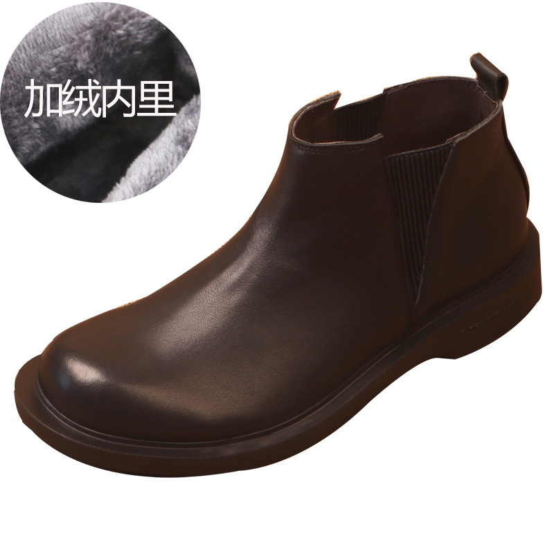 Винтажная деловая повседневная обувь из натуральной кожи с высоким носком и большим носком, верхний слой из воловьей кожи, толстая подошва с круглым носком, мягкая кожаная мужская обувь больших размеров на флисовой подкладке