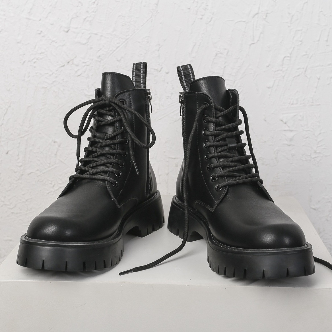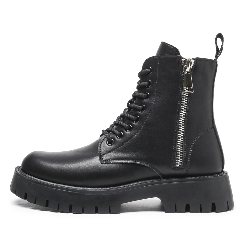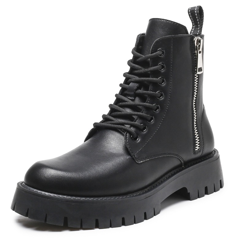 Мужские кожаные ботинки-мартинсы из натуральной кожи, осень 2025, новинка, очень большой размер, на толстой подошве, средней высоты, на шнуровке, с флисовой подкладкой, с боковой молнией