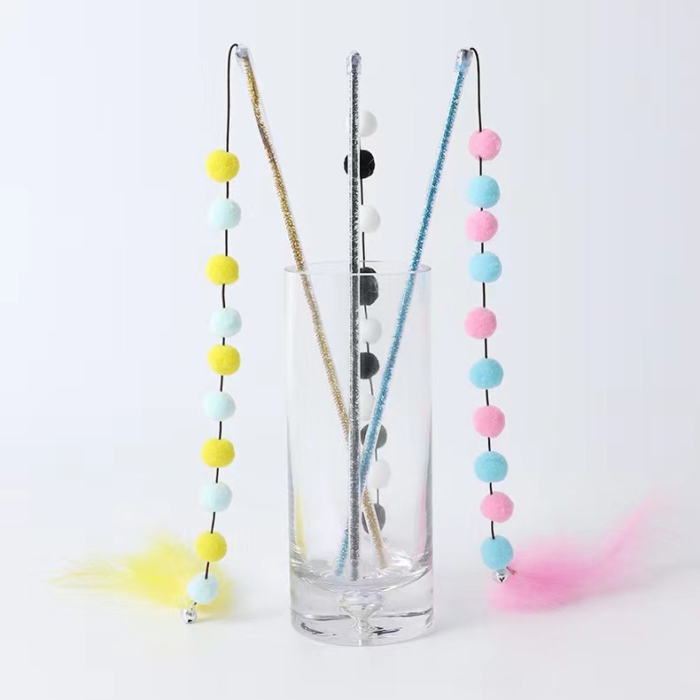 В наличии оптом Meow Xinbao акриловый цвет соответствия помпон перо забавный кот палочка забавный кот интерактивная игрушка для домашних животных
