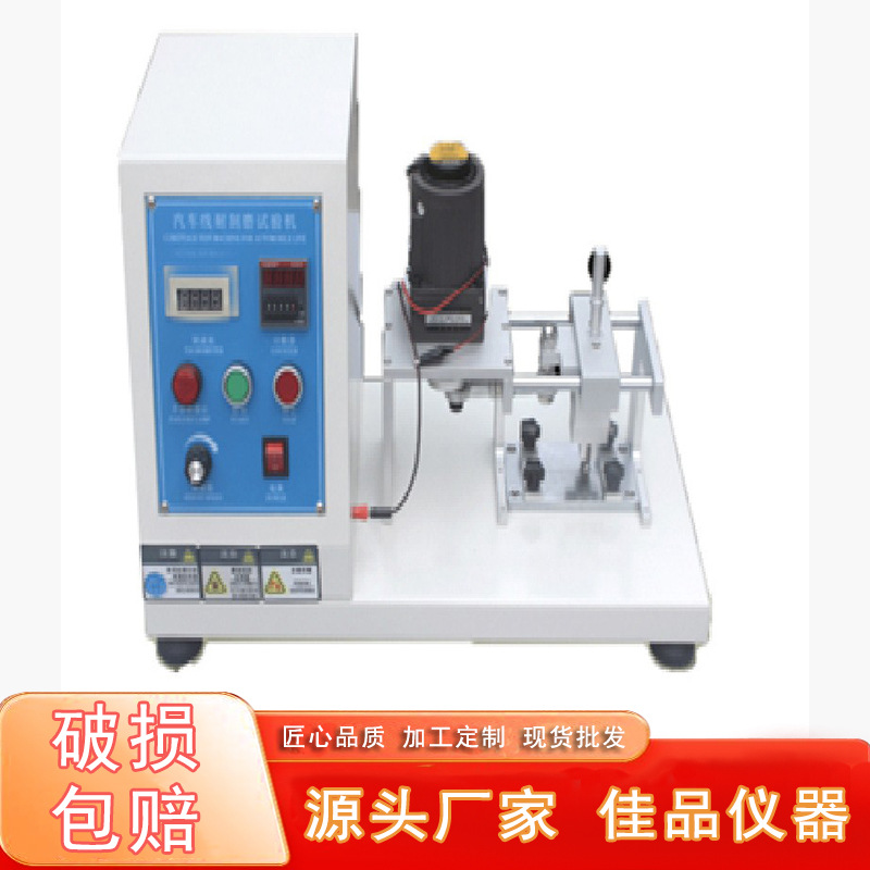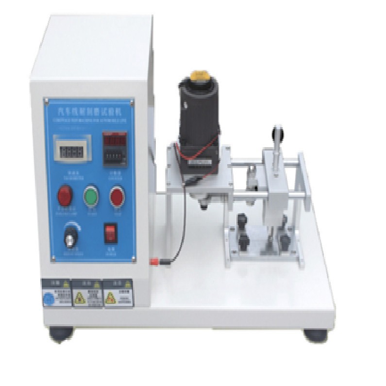汽车线耐刮磨试验机是刮磨汽车电线绝缘表面的装置。本机沿试样轴向往复刮磨绝缘表面,当刮针磨透绝缘接触导体时自动停止。