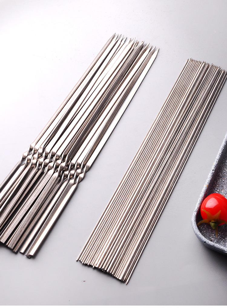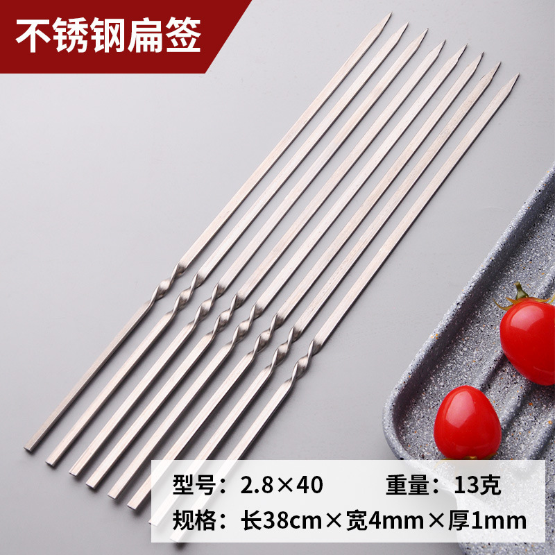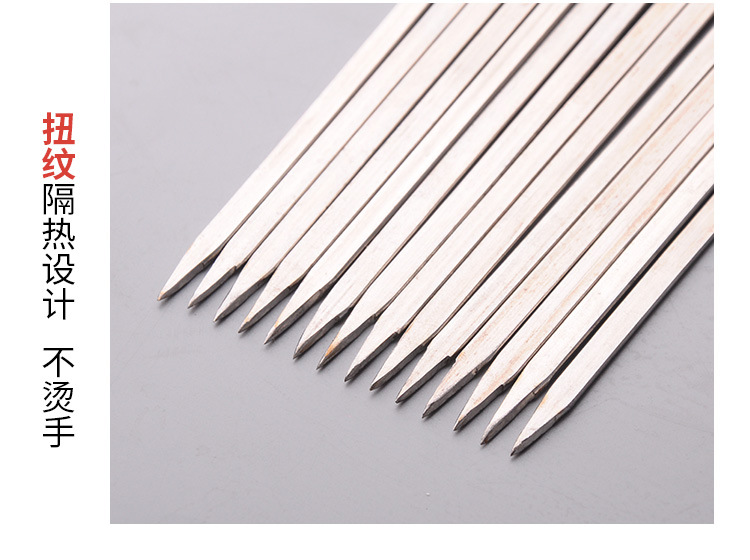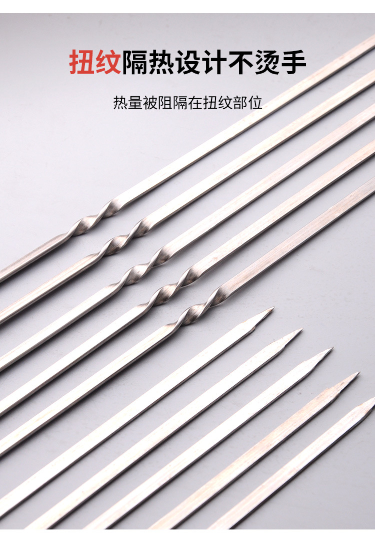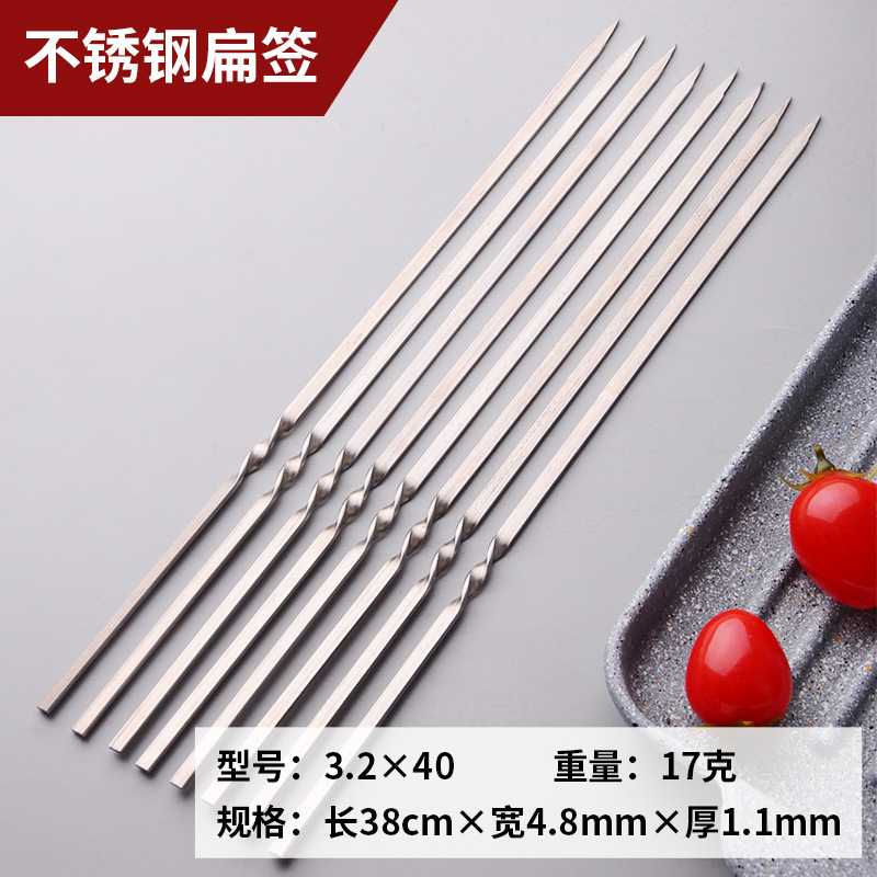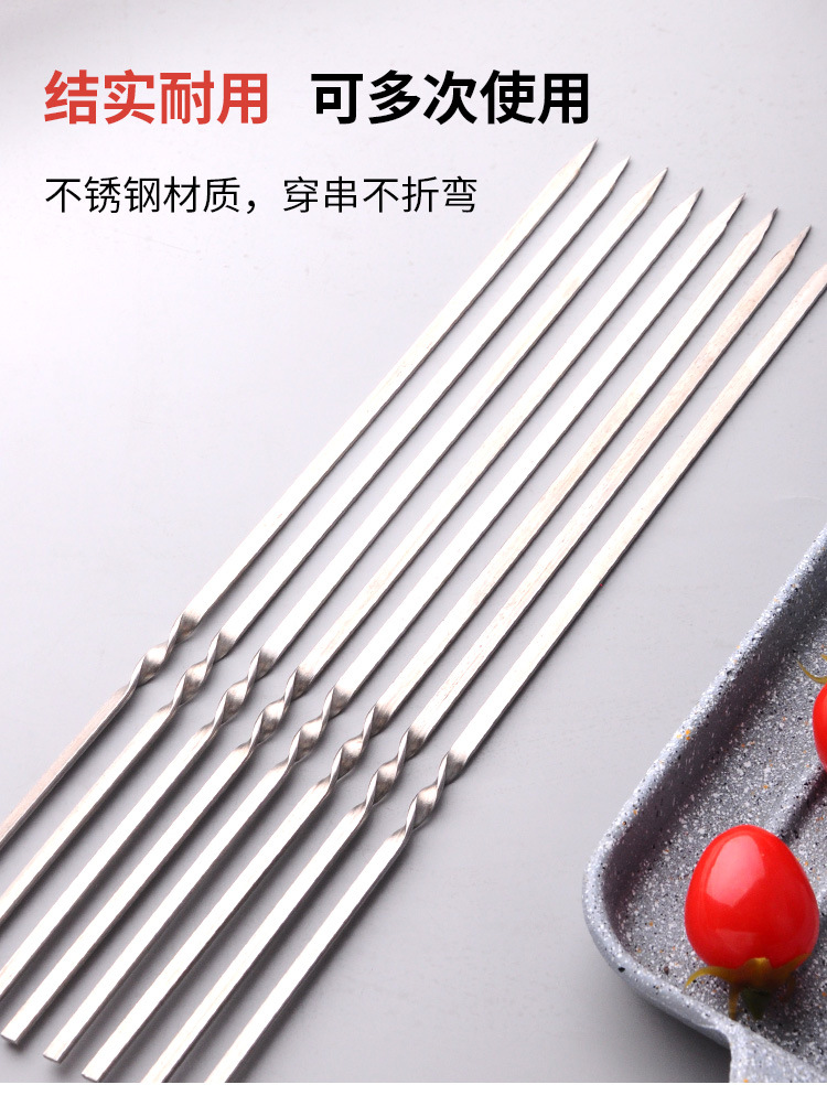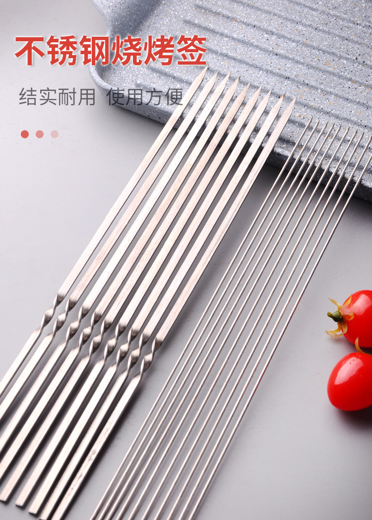 Оптовые коммерческие шампуры для барбекю из нержавеющей стали, круглые шампуры, плоские шампуры, шампуры из утолщенной стали, упакованные на вынос шампуры, магазин барбекю
