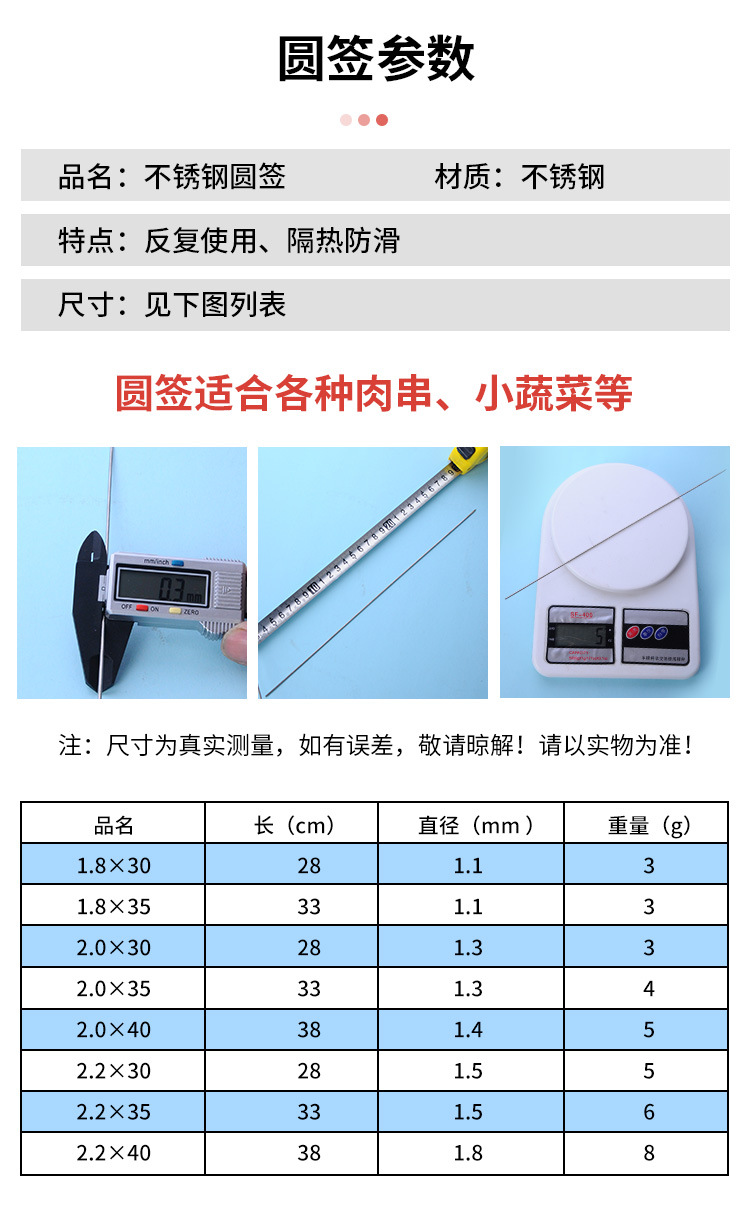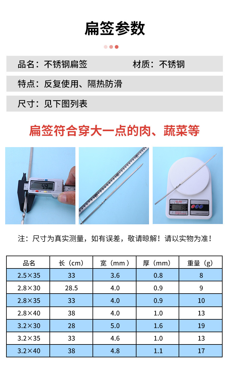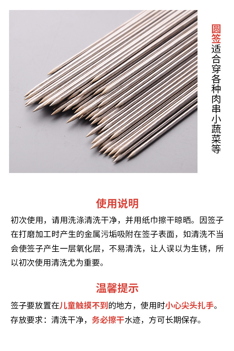 本店不锈钢产品选用201材质 非食品级 请勿当做烧烤签