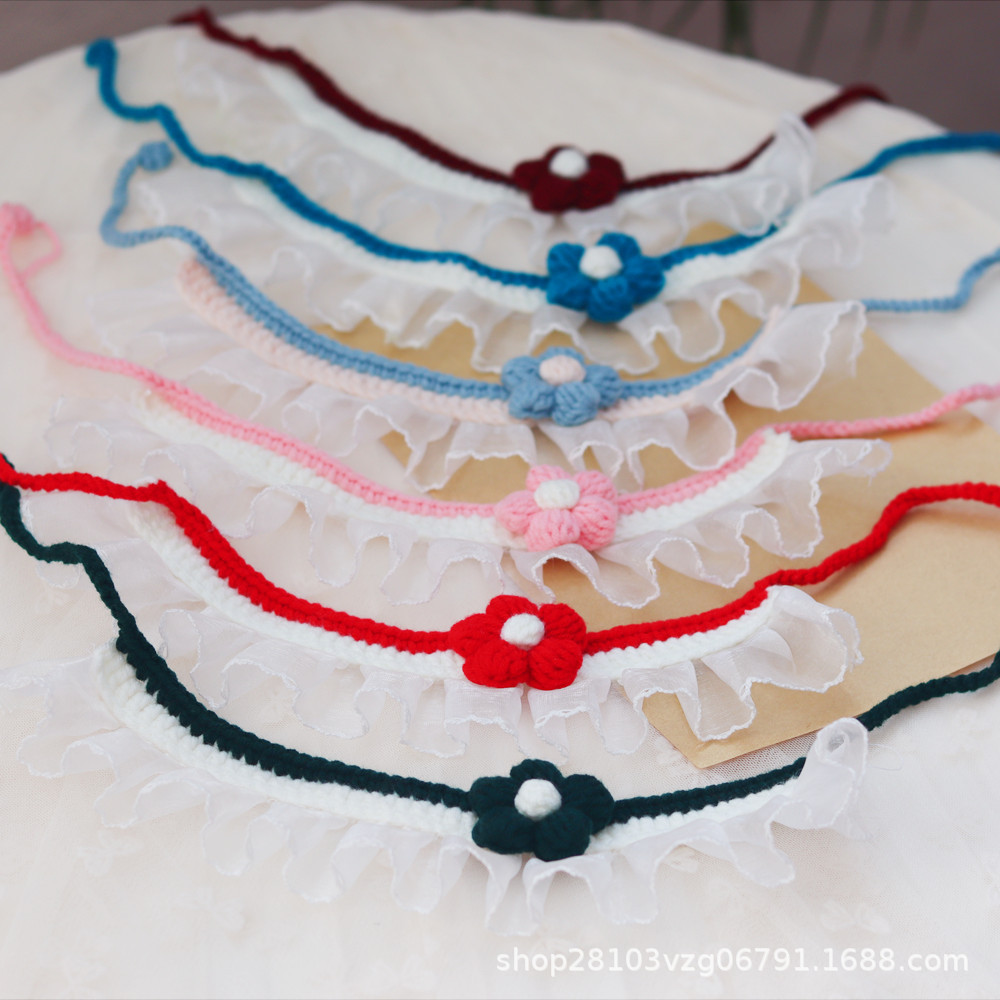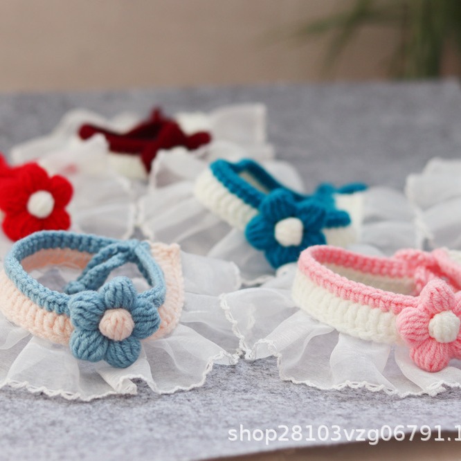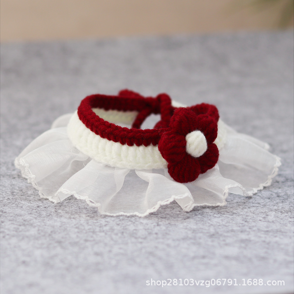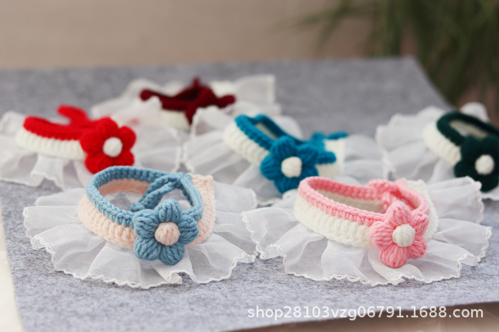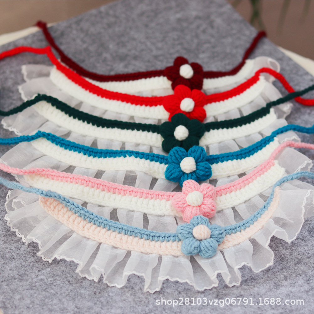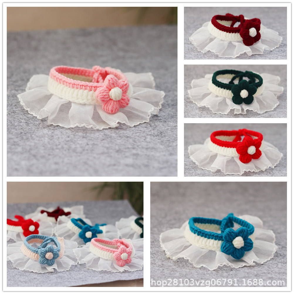 Кружевной шейный нагрудник для домашних животных кошачий нагрудник кошачий нагрудник для домашних животных ошейник шерстяной цветок вязаный кружевной нагрудник