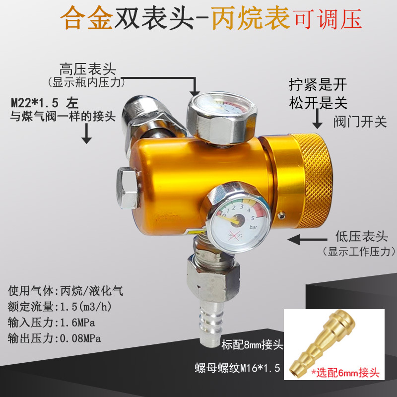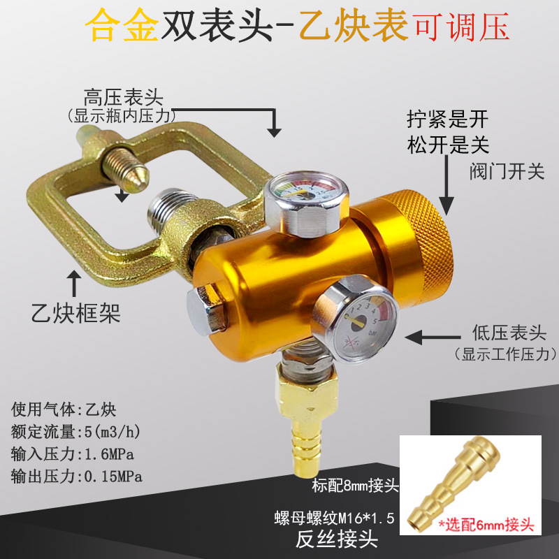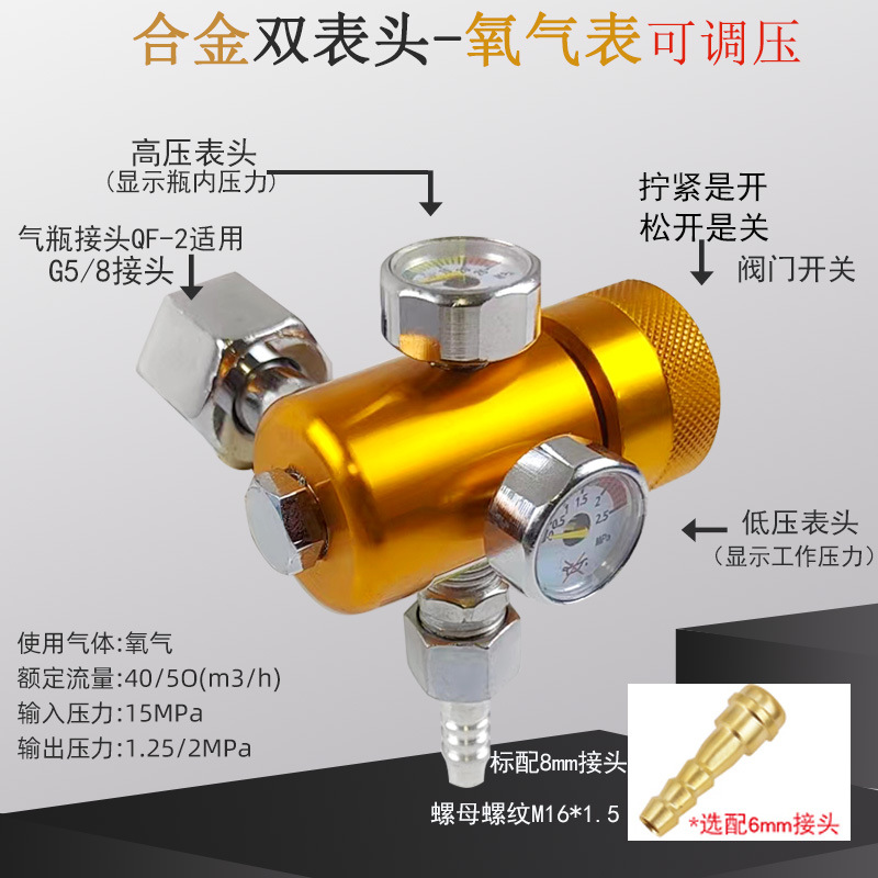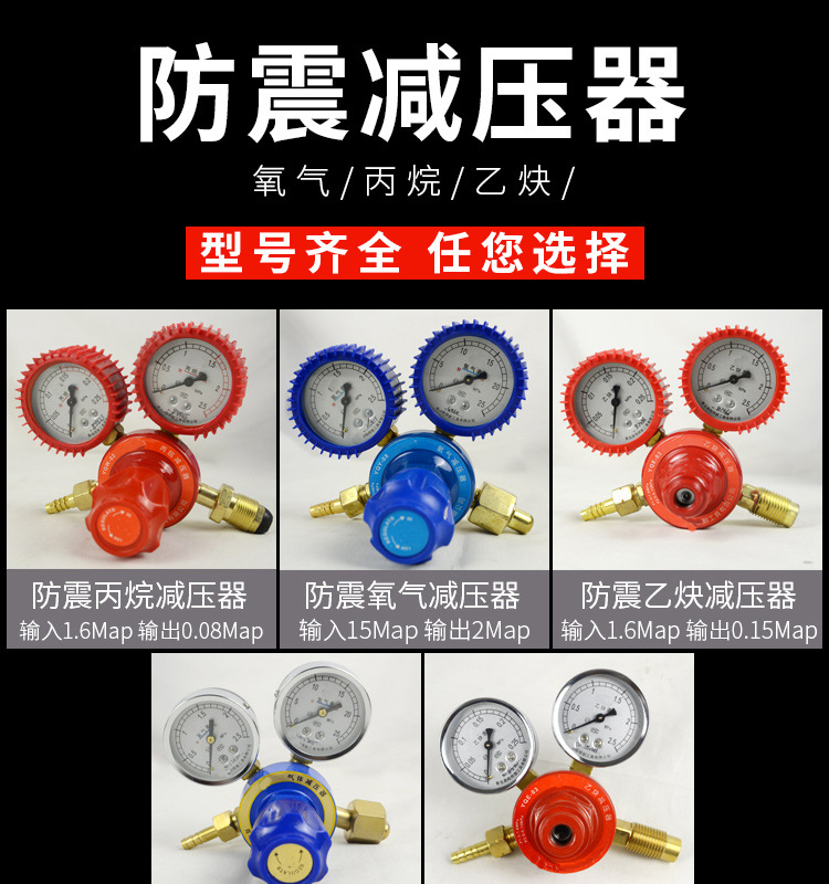 Двойная головка Регулируемое давление энергосберегающий измеритель кислорода (большая ручка); Двойная головка Регулируемое давление энергосберегающий ацетиленовый метр (большая ручка); Пропан двойного главного регулируемого давления энергосберегающие/газовый счетчик (большая ручка); Энергосберегающий измеритель аргона; Энергосберегающий измеритель углекислого газа 36V; Счетчик кислорода с резиновой втулкой; Ацетилен метр с резиновой втулкой; Пропановый стол с резиновой втулкой; Бутик чистой меди кислородный метр; Прекрасная Чистая Медь Ацетилен Часы; Бутик Чистой Меди Пропан Стол; Измеритель азота с резиновой втулкой; Бутик чистой меди азота метр; Миниый метр кислорода анти -- падения; Мини анти-падение ацетилена часы; Мини Анти-падение пропан часы; Двойной главный метр кислорода регулируемого давления энергосберегающий (сплав); Регулируемое давление энергосберегающий пропан стол (сплав); Регулируемый энергосберегающий измеритель ацетилена под давлением (сплав); Миниатюрный полностью медный регулируемый двойной манометр для измерения давления кислорода с защитой от падений; Миниатюрный полностью медный двухголовочный регулируемый ацетиленовый манометр с защитой от падения; Миниатюрный полностью медный двухголовочный регулируемый счетчик давления для пропана/газа с защитой от падений; Мини-регулятор аргонового газа с одной головкой, полностью медный