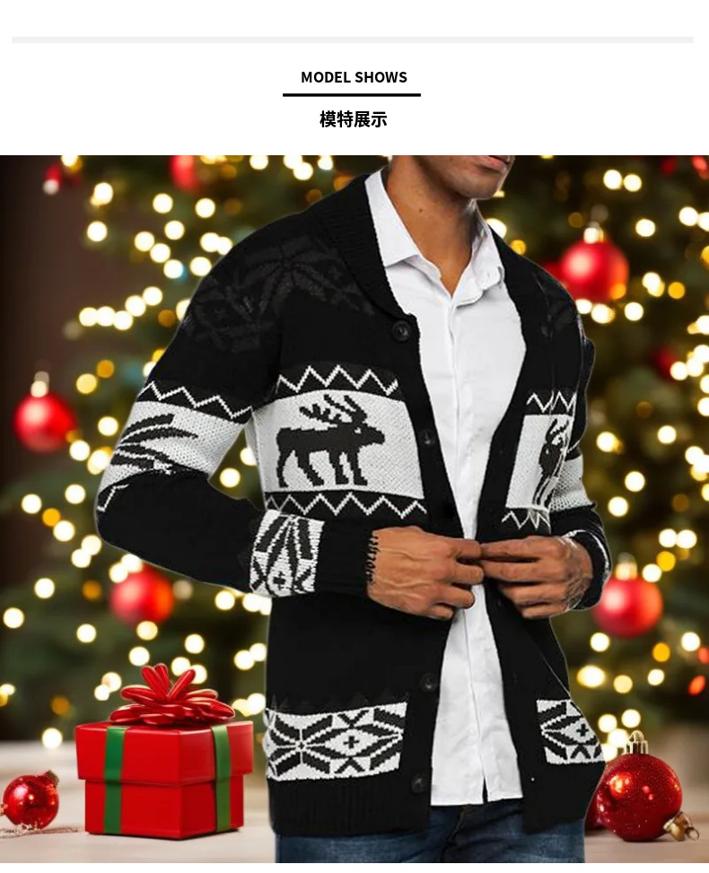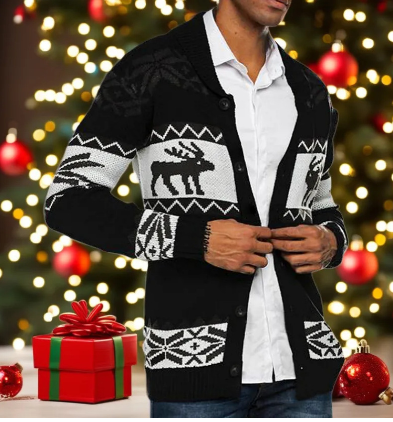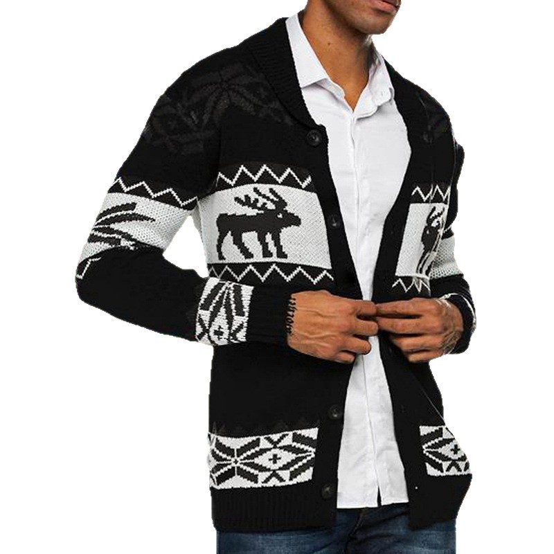 Amazon осенне-зимний мужской европейский и американский Рождественский жаккардовый свитер на пуговицах кардиган свитер пальто SY0032