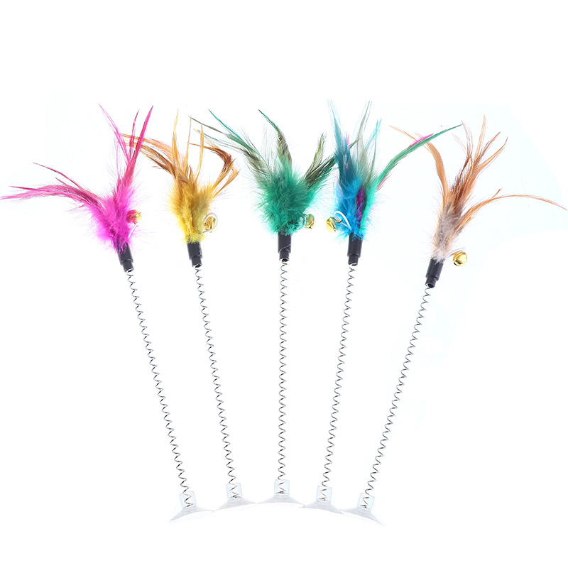 Игрушка для кошек Hachi: дразнилка-удочка с присоской, мягкой пружиной и перьями, хит продаж, популярный товар, с колокольчиком