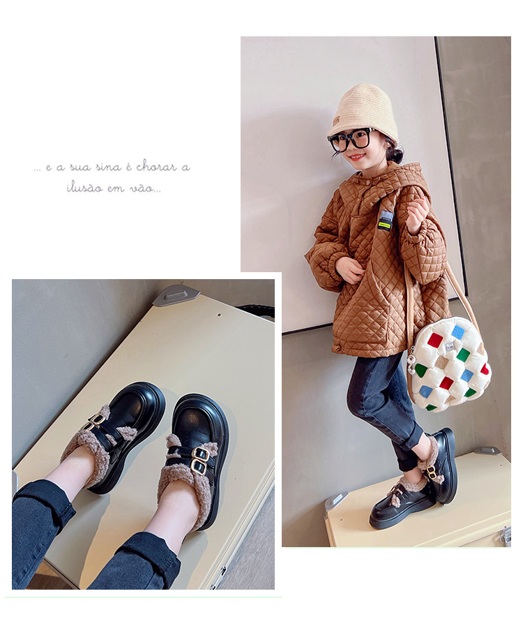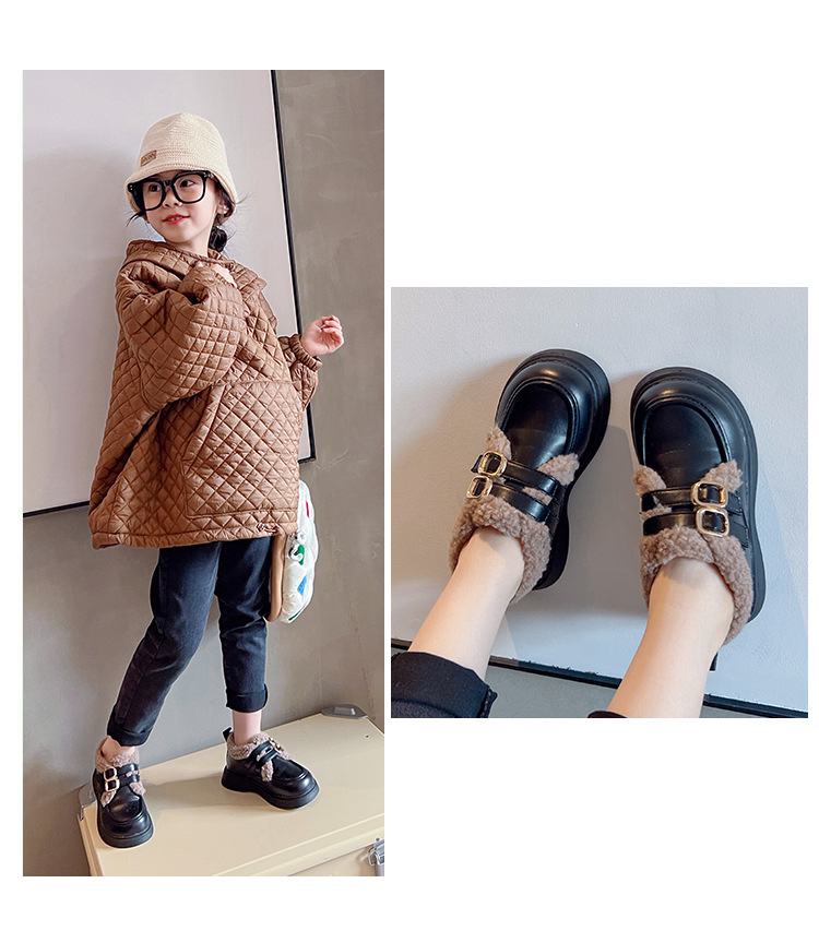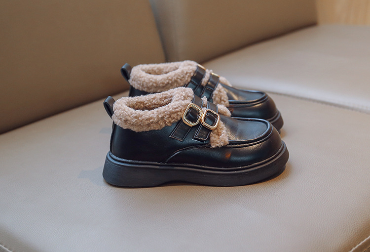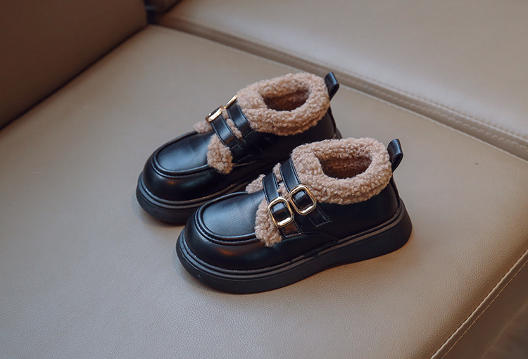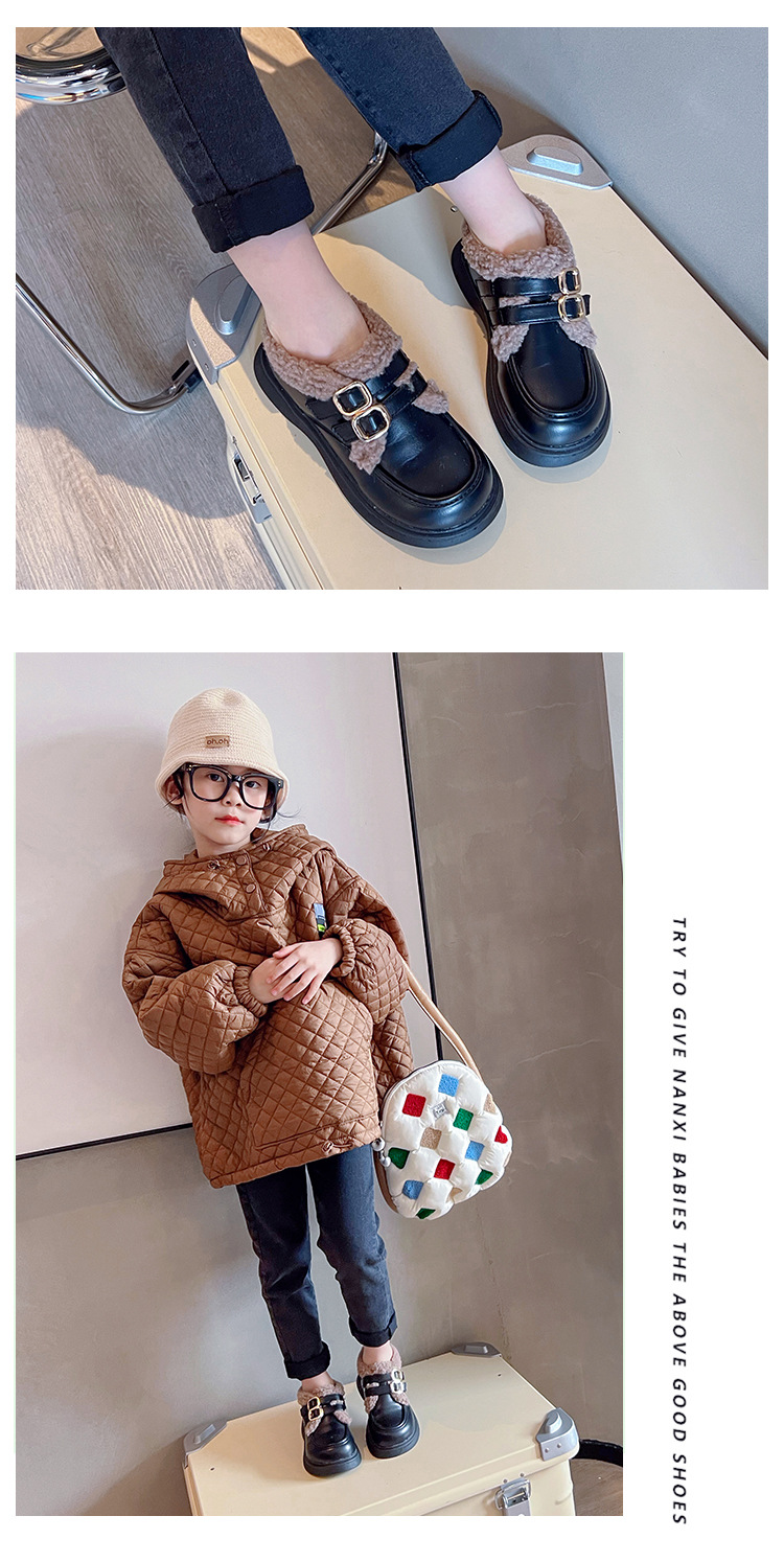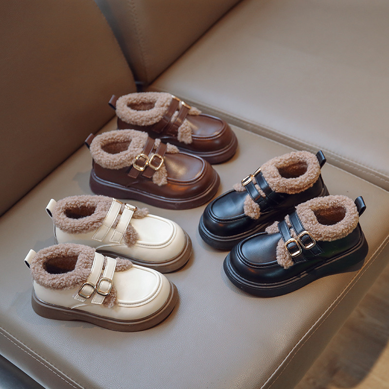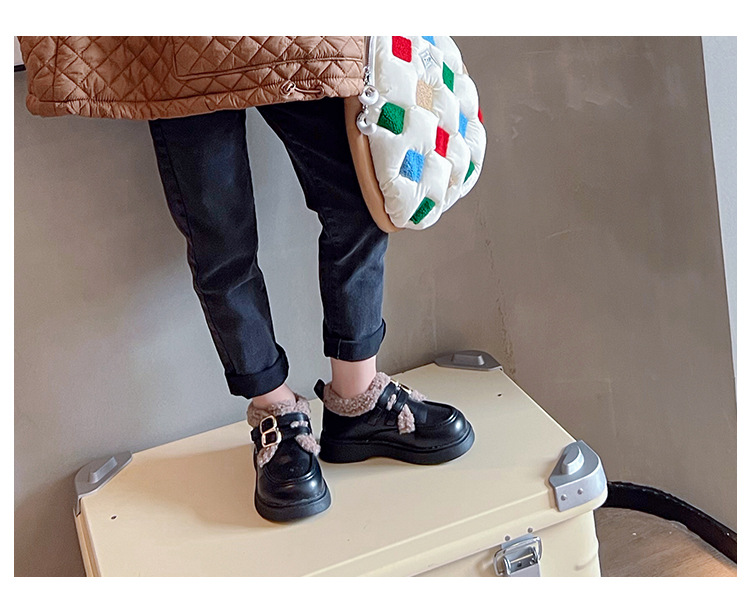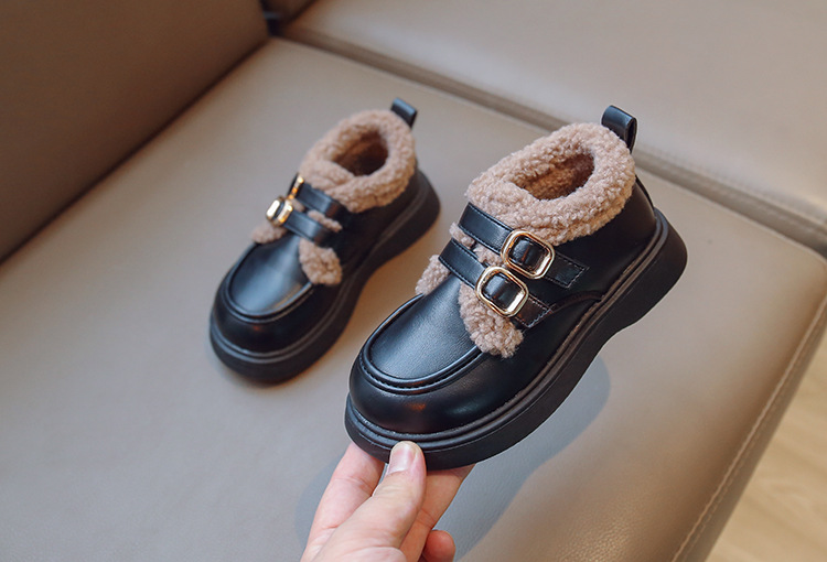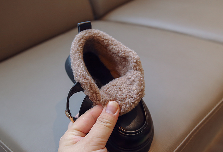 Хлопковая обувь для девочек на флисовой подкладке, туфли принцессы в британском стиле, осень 2024, новые теплые и утолщенные шапочки для маленьких девочек на мягкой подошве