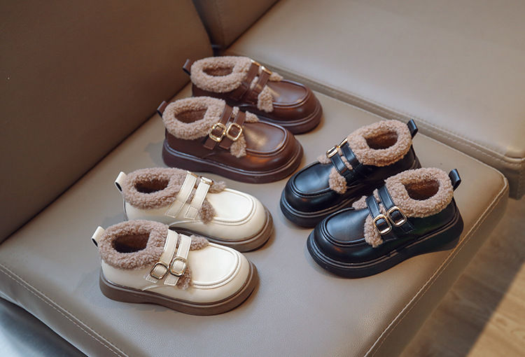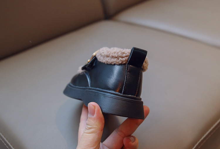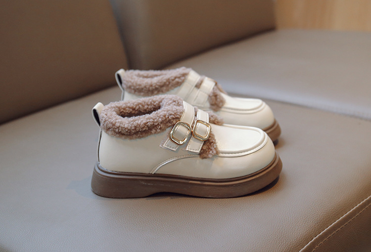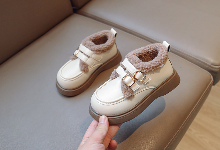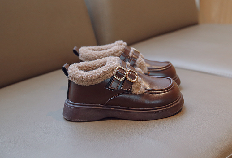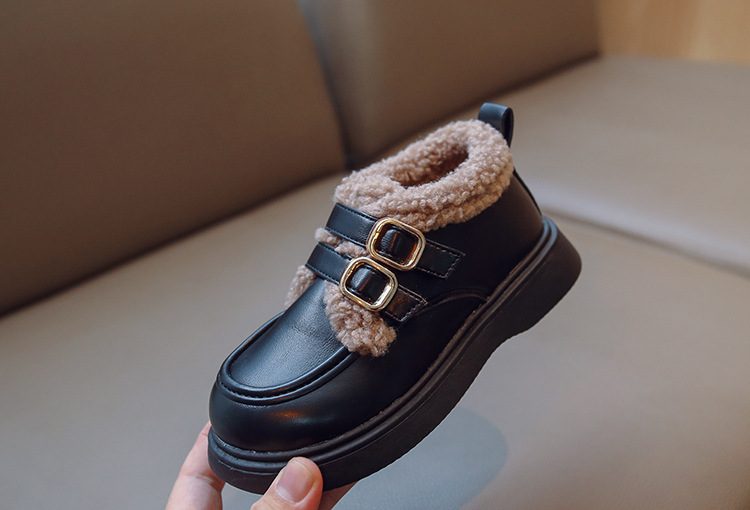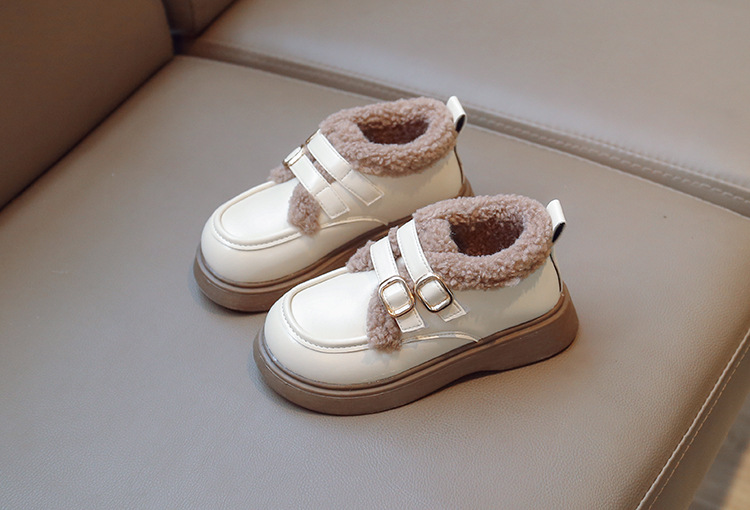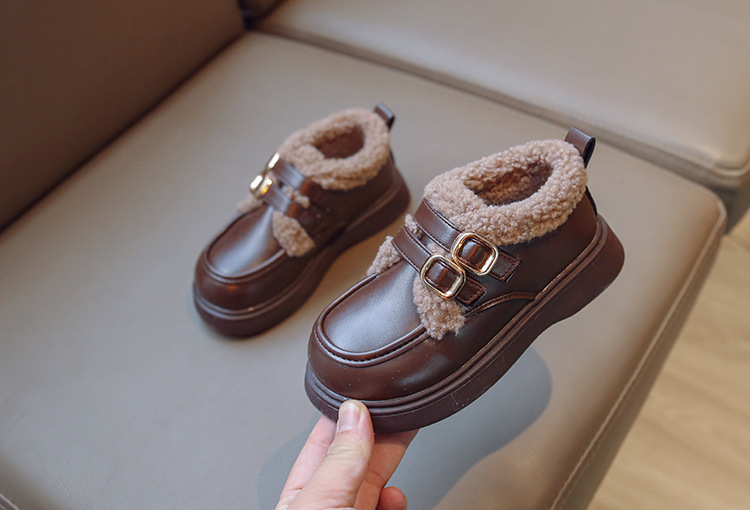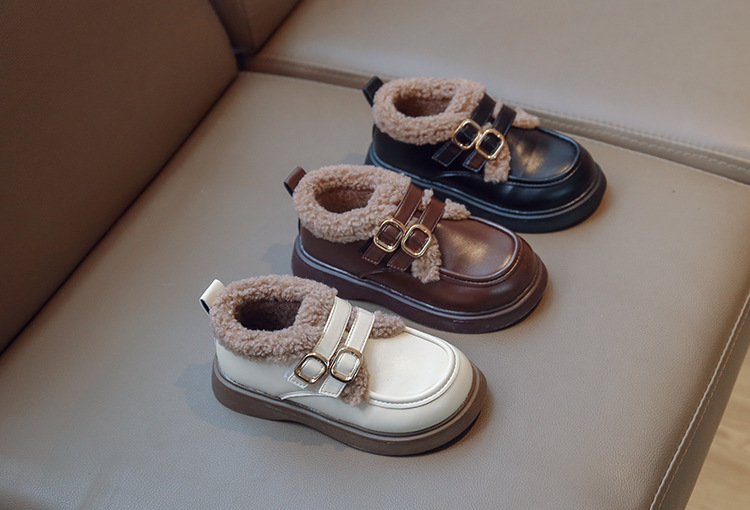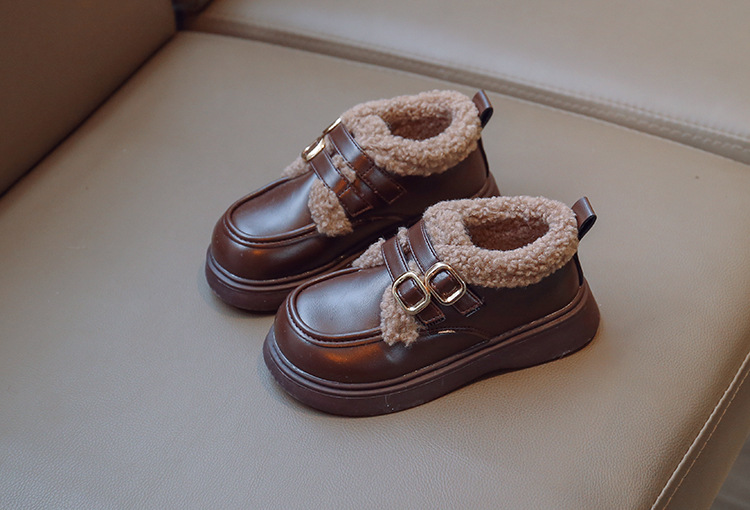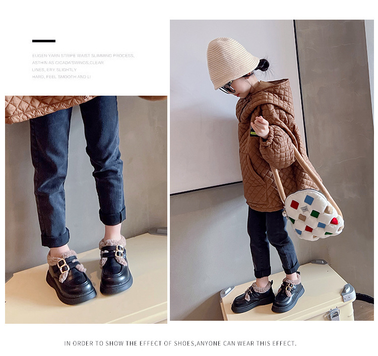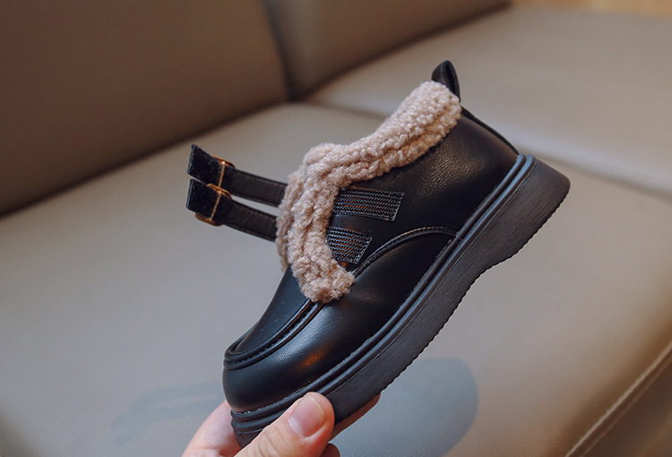 Хлопковая обувь для девочек на флисовой подкладке, туфли принцессы в британском стиле, осень 2024, новые теплые и утолщенные шапочки для маленьких девочек на мягкой подошве