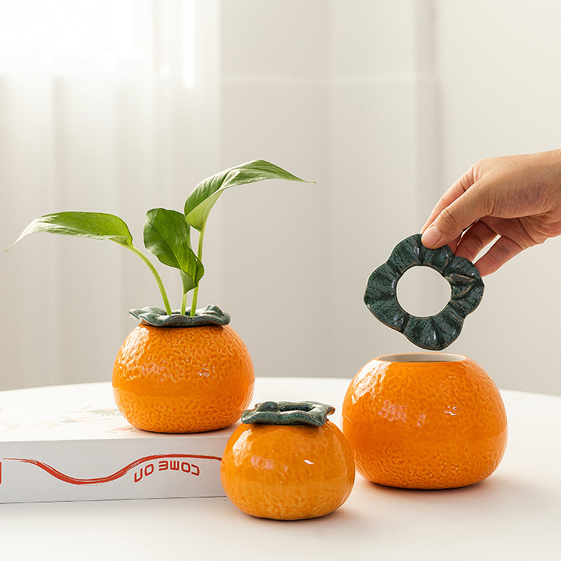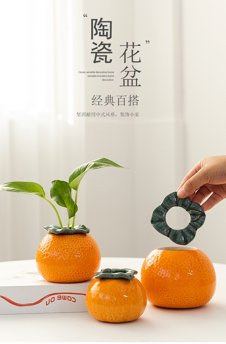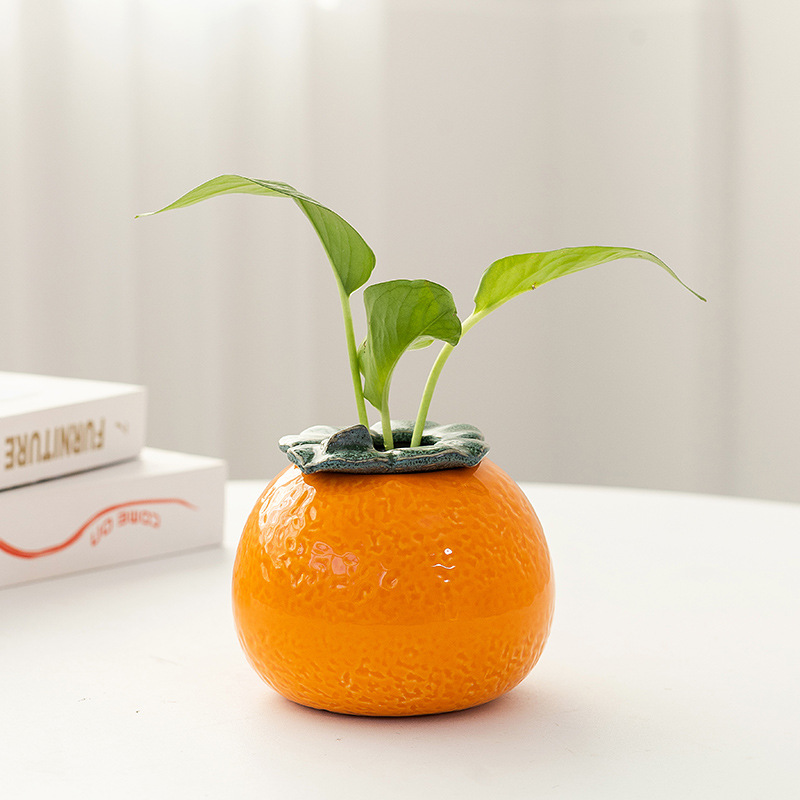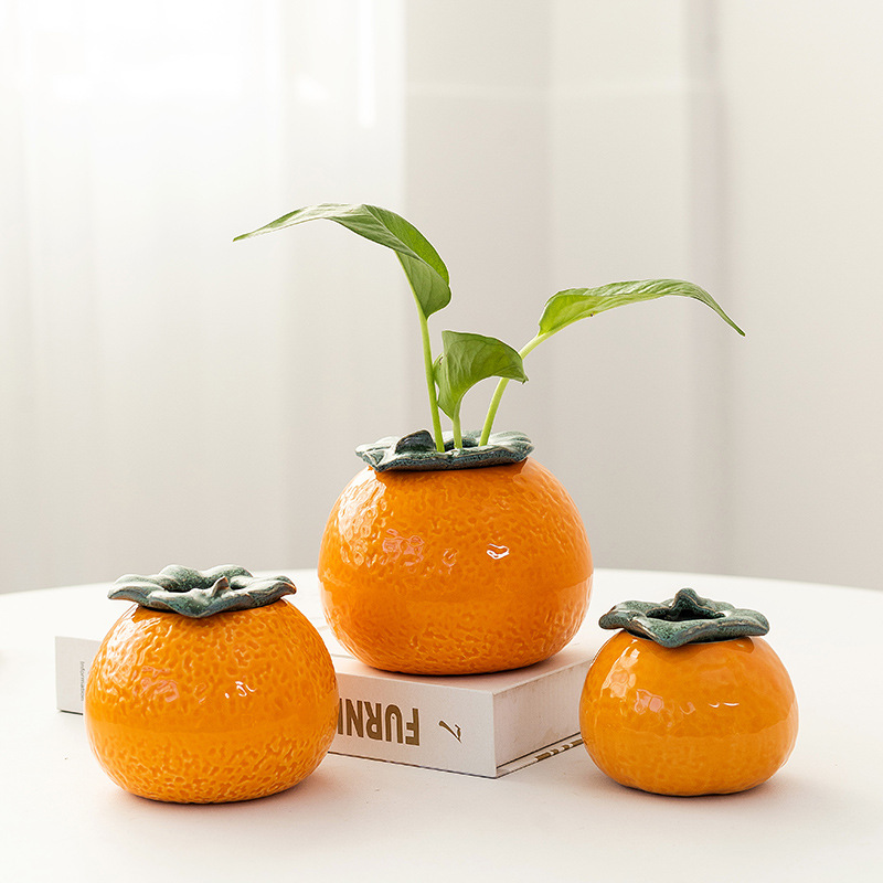 Моделирование фруктового цветочного горшка керамическое удача оранжевое украшение дома оптом Непористая гидропонная зеленая Роза украшение для гостиной