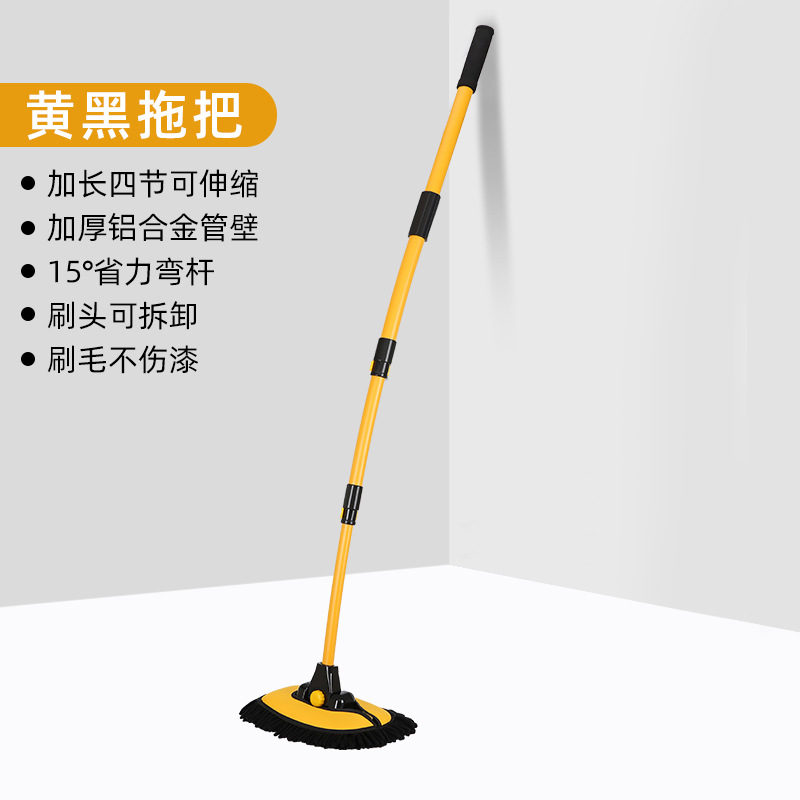 【套装清单】:黄黑四节拖把*1个、替换头*1个、30*60毛巾*1条、缝隙刷*1个