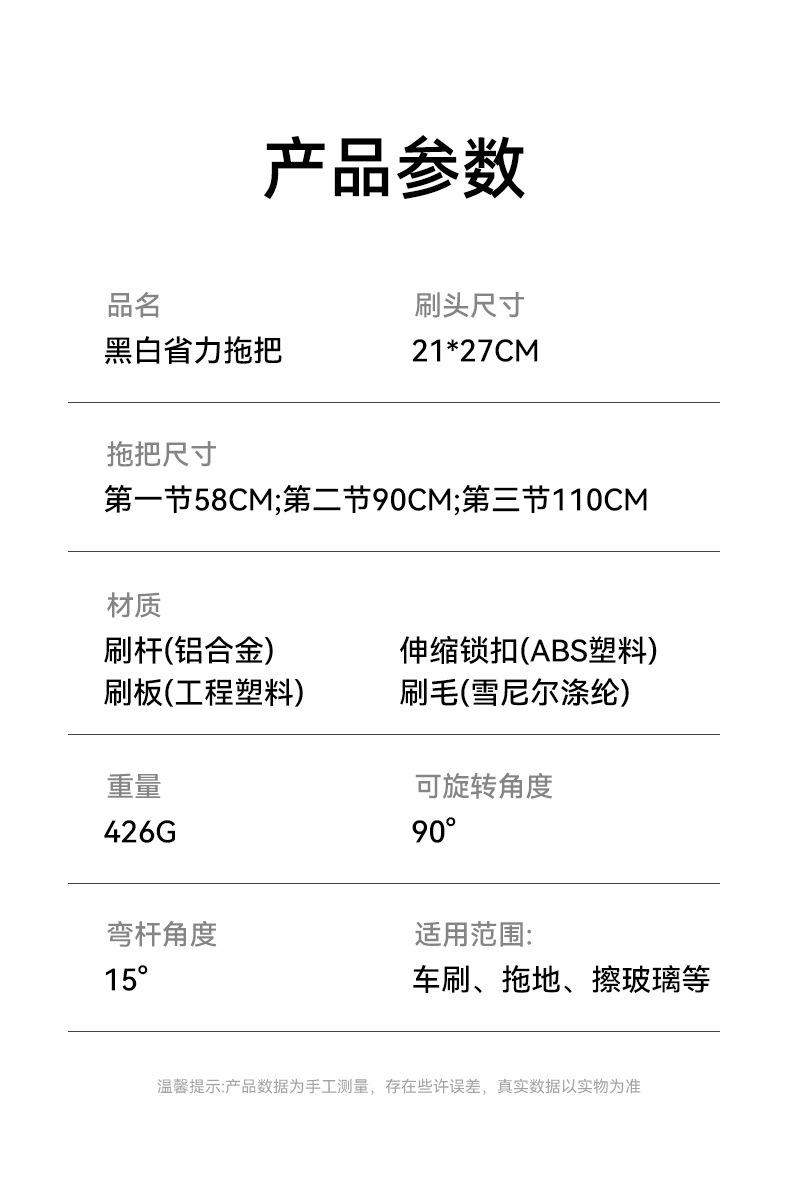 【套装清单】:黄黑三节拖把*1个、替换头*1个、30*60毛巾*1条、缝隙刷*1个