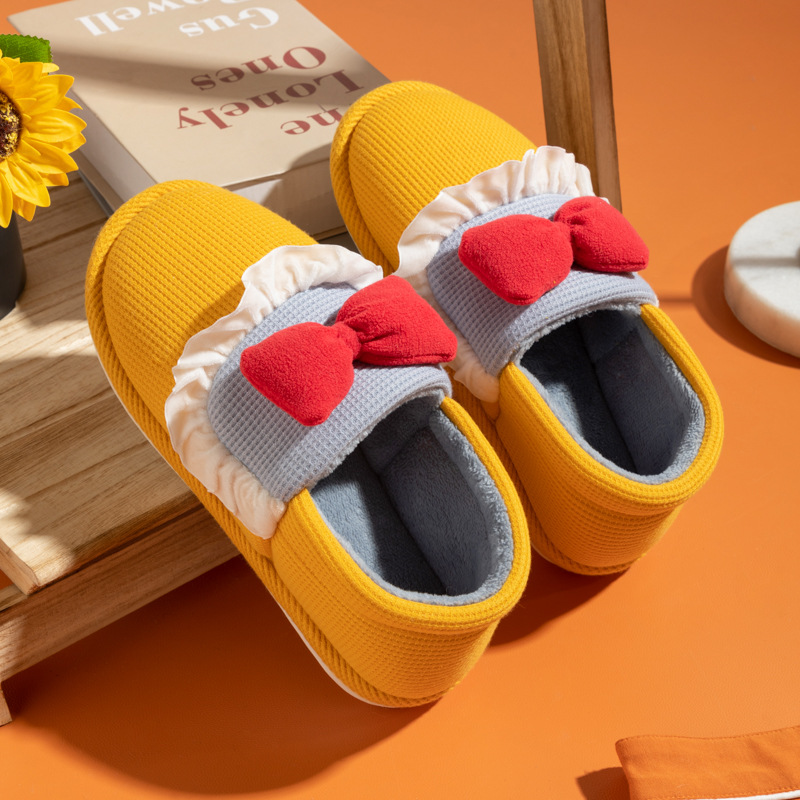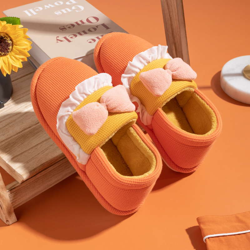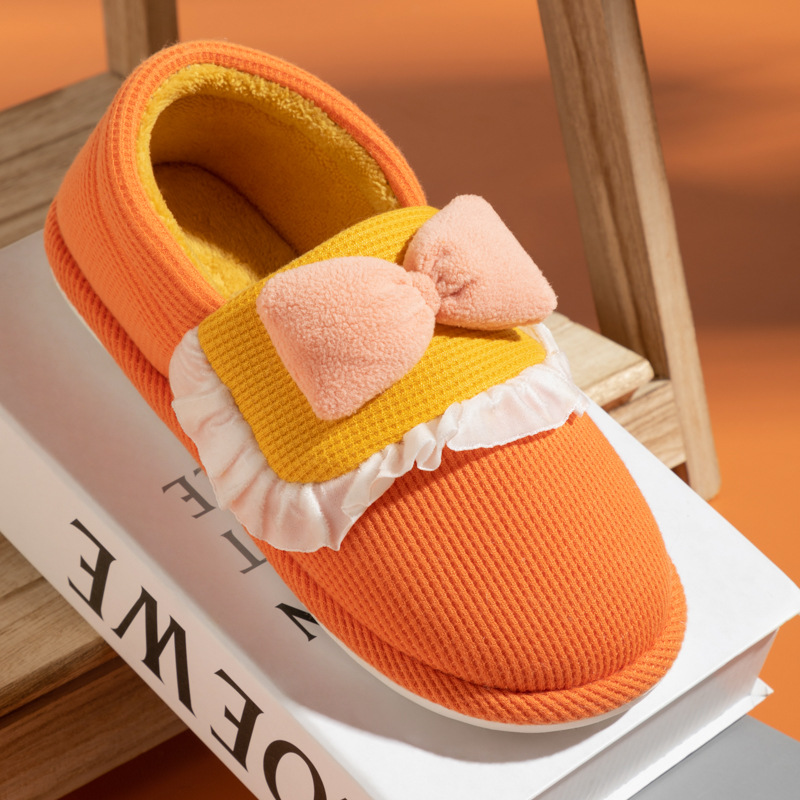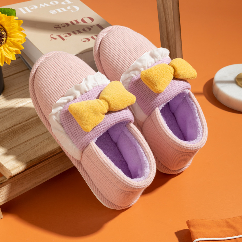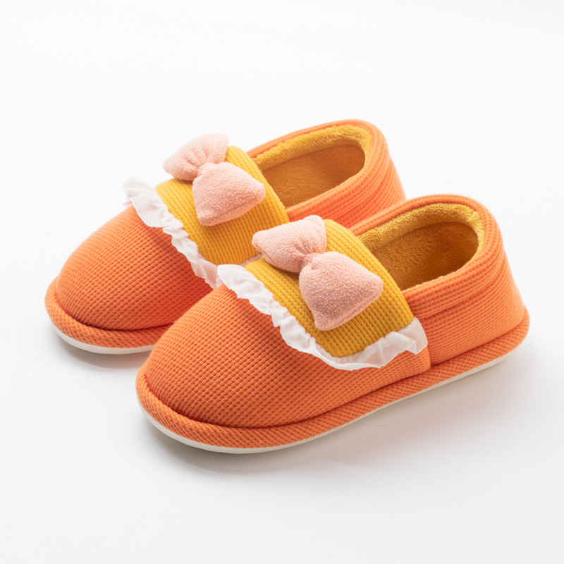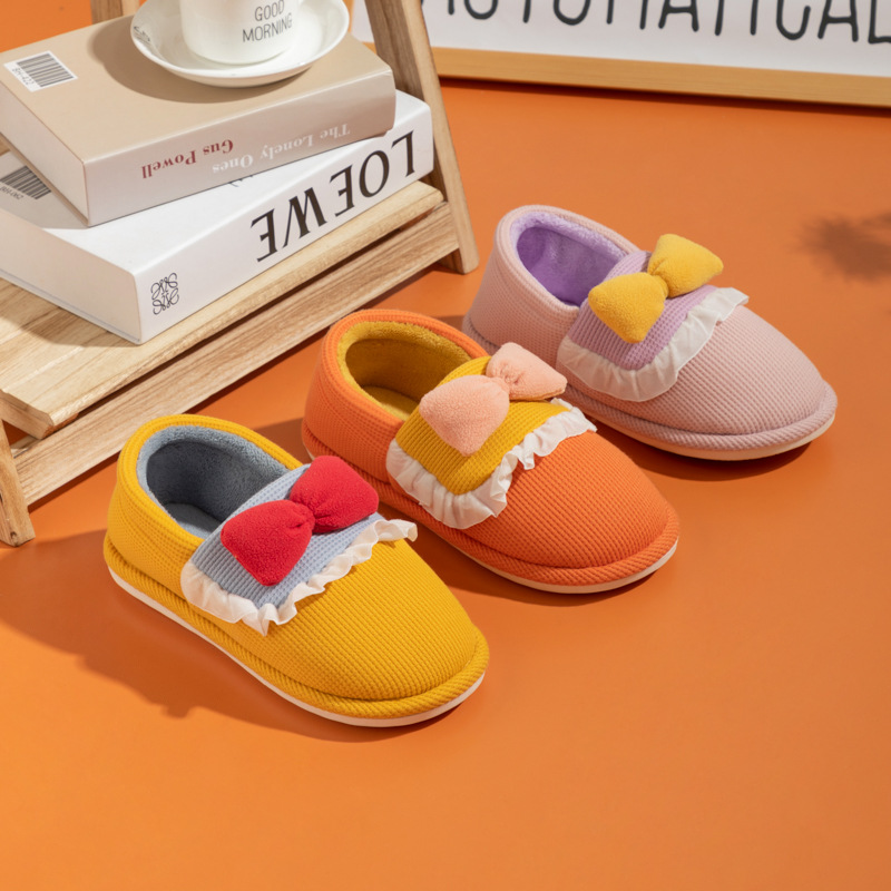 Новые теплые замшевые мягкие Нескользящие простые домашние тапочки для родителей и детей с бантом, хлопчатобумажная обувь, детская обувь оптом