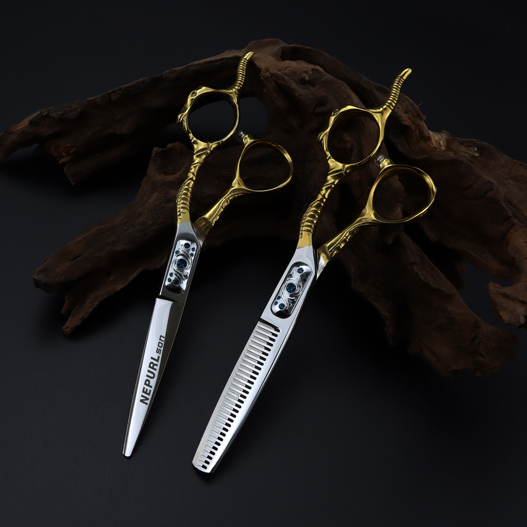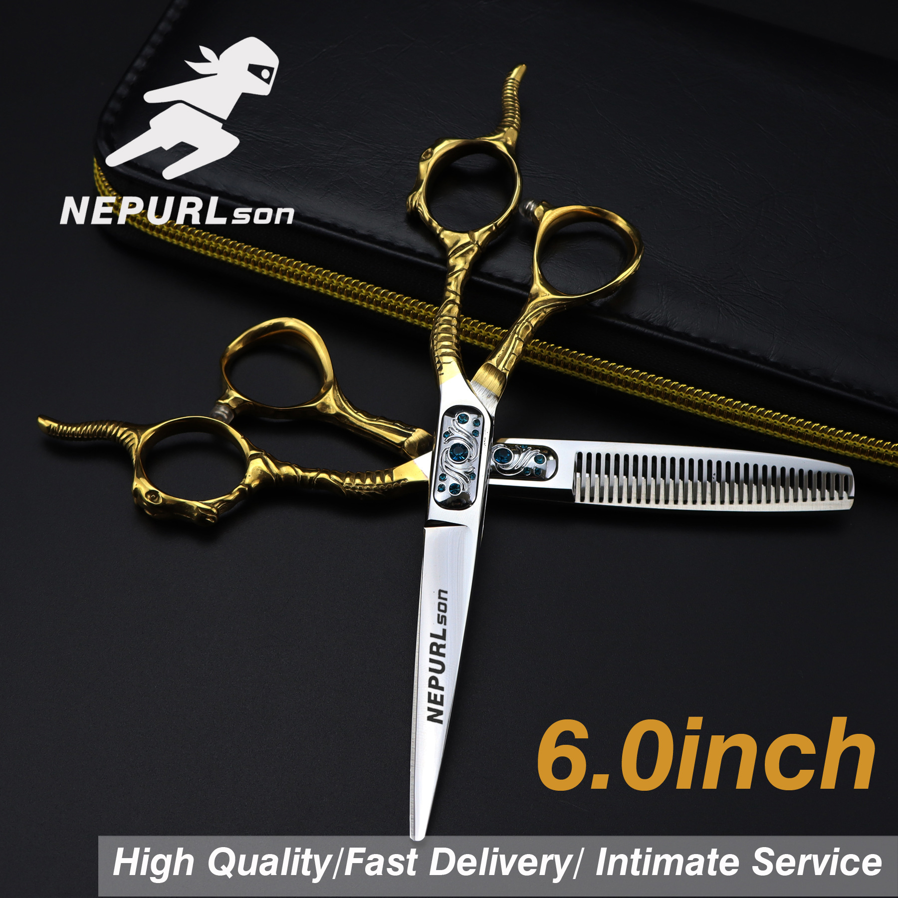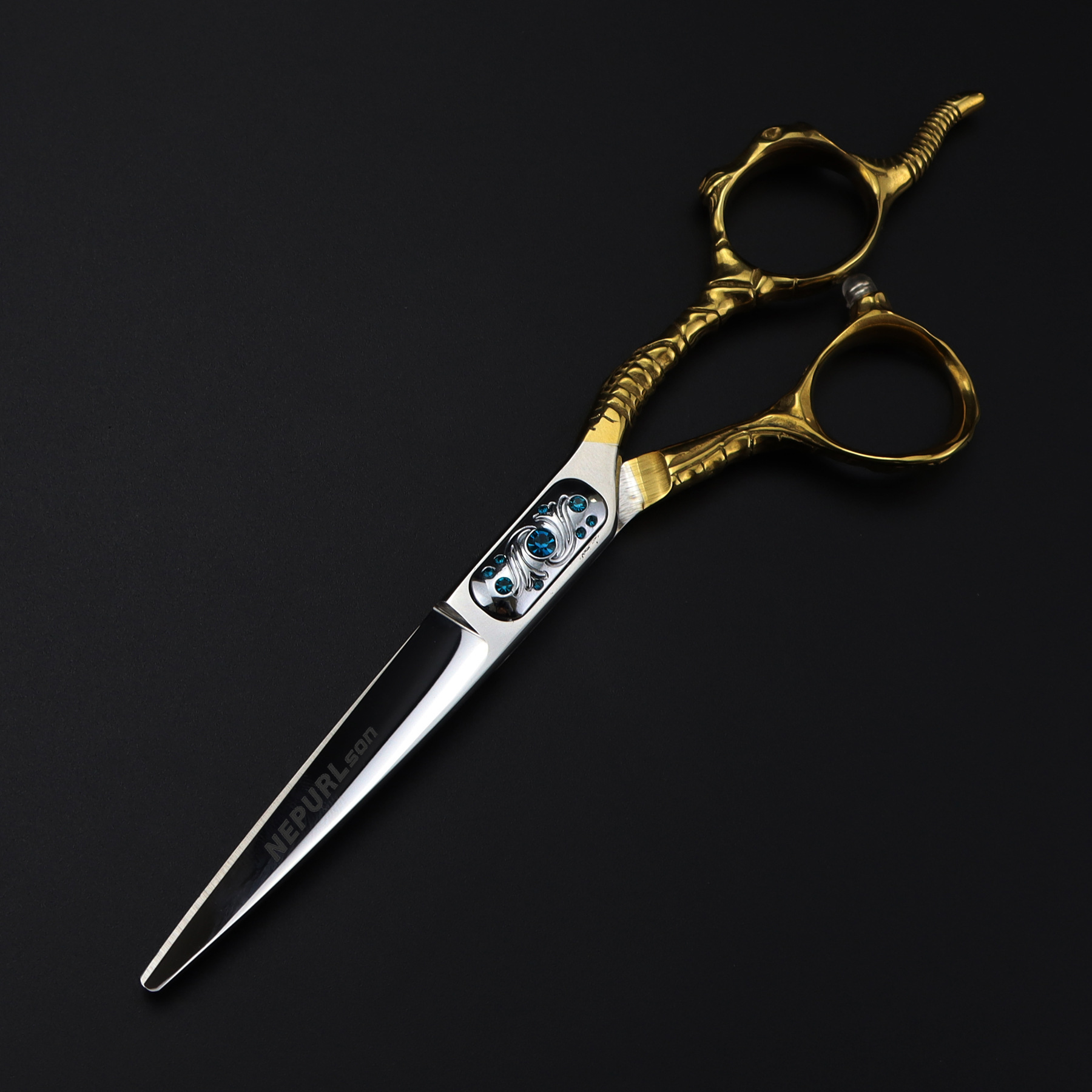 6 дюймов Neptsen Половина золотого покрытия драгоценный камень голова Овцы ручка Парикмахерские ножницы парикмахерские ножницы плоские ножницы H