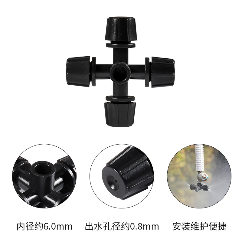 Теплица Садоводство Капельное орошение Охлаждающий спринклер Черный крест Распылительная насадка Четыре выхода Распылительная микронасадка