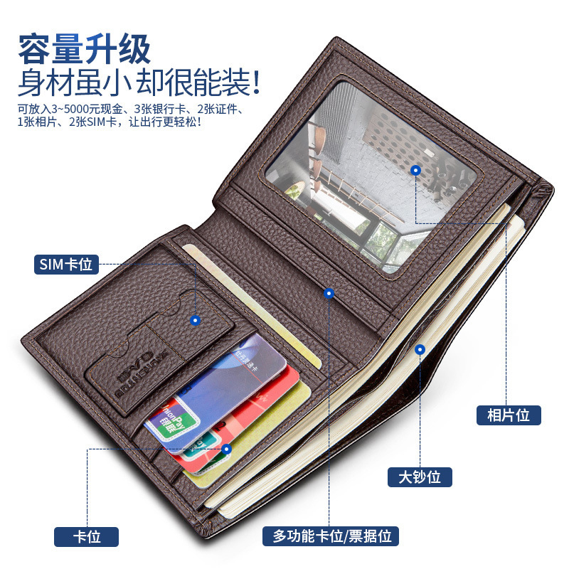 Мужской кошелек в стиле ретро 2025 года, короткий, для молодых людей, из первосортной телячьей кожи, вертикальный стиль, корейская версия, деловая строчка.