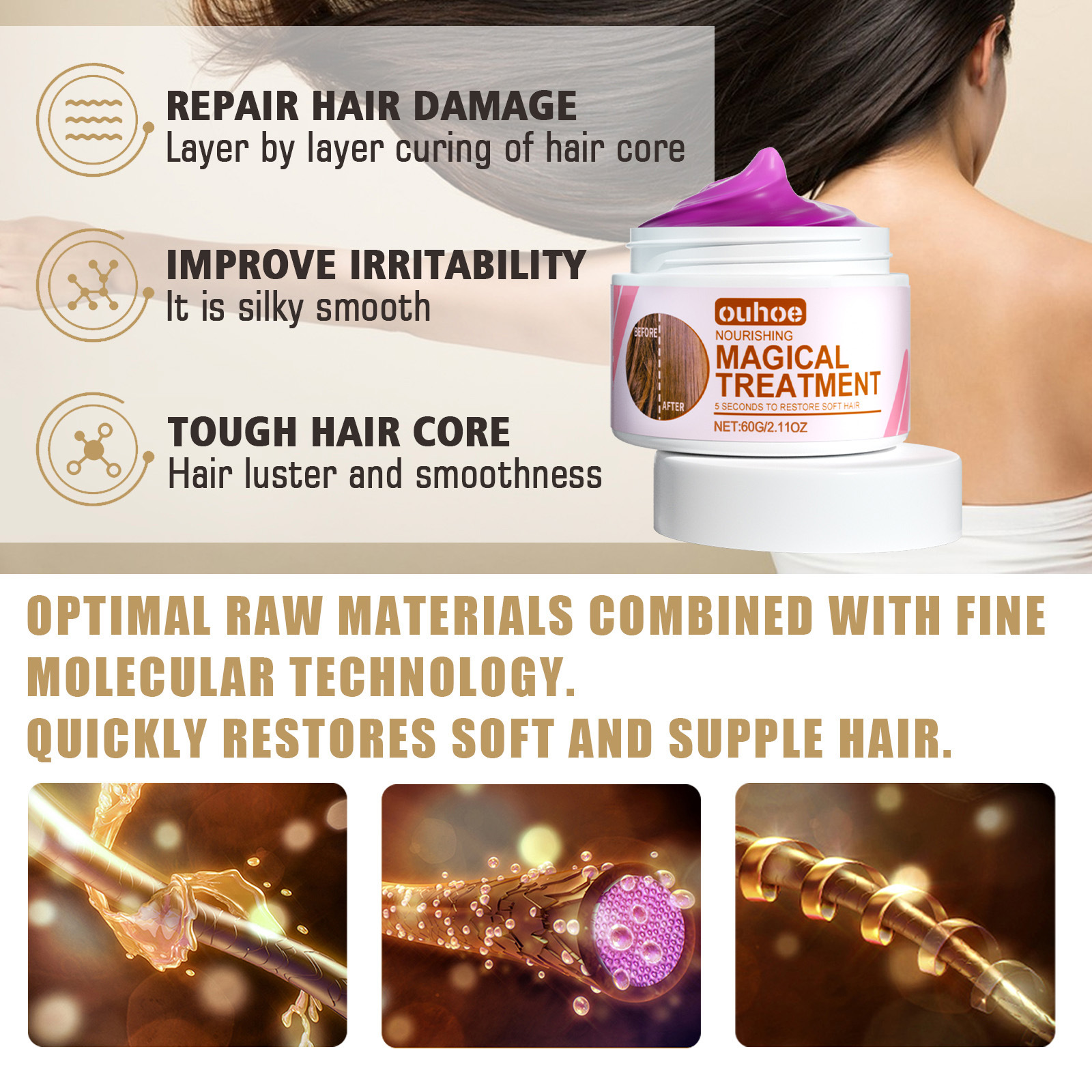 OUHOE Кератиновая маска для ухода за волосами Уход без пара Шелковистая химическая завивка и краска Уход за волосами Увлажняющая питательная маска для волос Уход за волосами