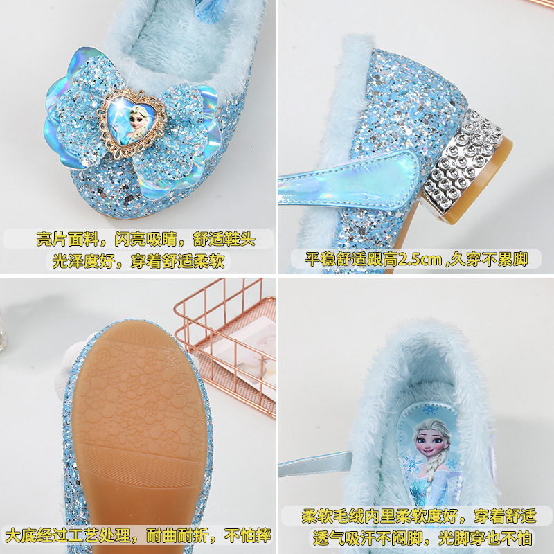 Обувь принцессы для девочек, зимняя новая синяя обувь Aisha, обувь с кристаллами на флисовой подкладке для маленьких и средних детей на высоком каблуке