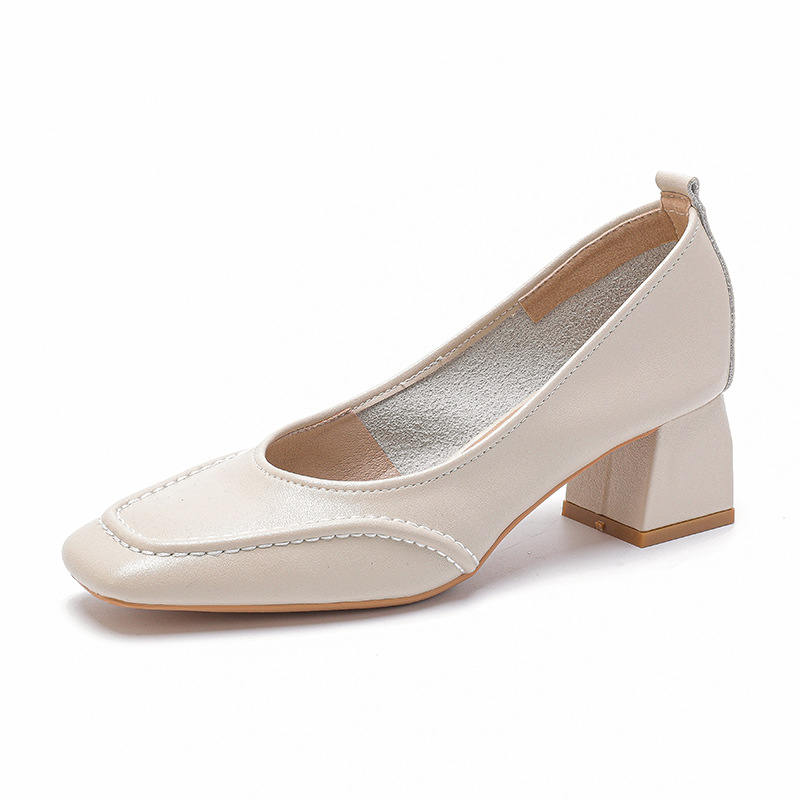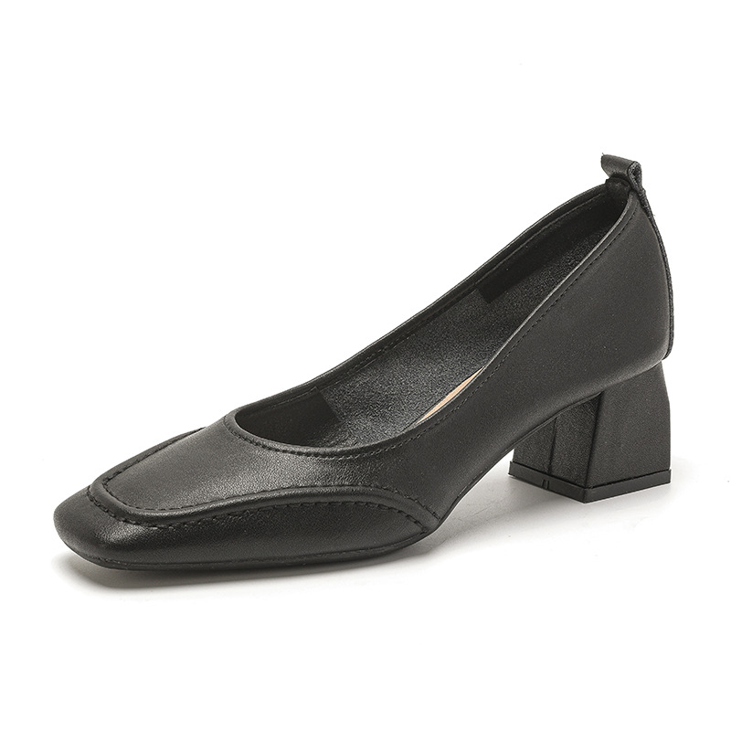 5230-1 кожаные одиночные туфли с квадратным носком женские туфли на толстом каблуке на высоком каблуке из мягкой кожи с мягкой подошвой в стиле феи, нежные туфли в стиле поздней ночи, Новинка