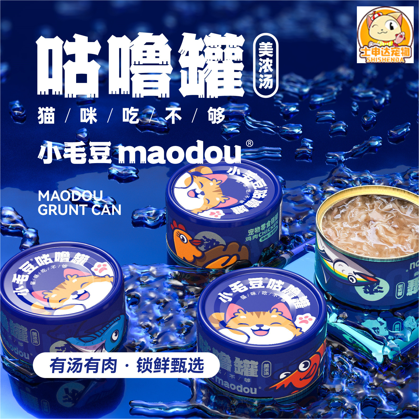 Консервированный маленький Maodou Cat Guru Pot Увлажнение в котенка Белый мясной суп Горшок Кошка Закуски Куриная грудка 85 г Закуски
