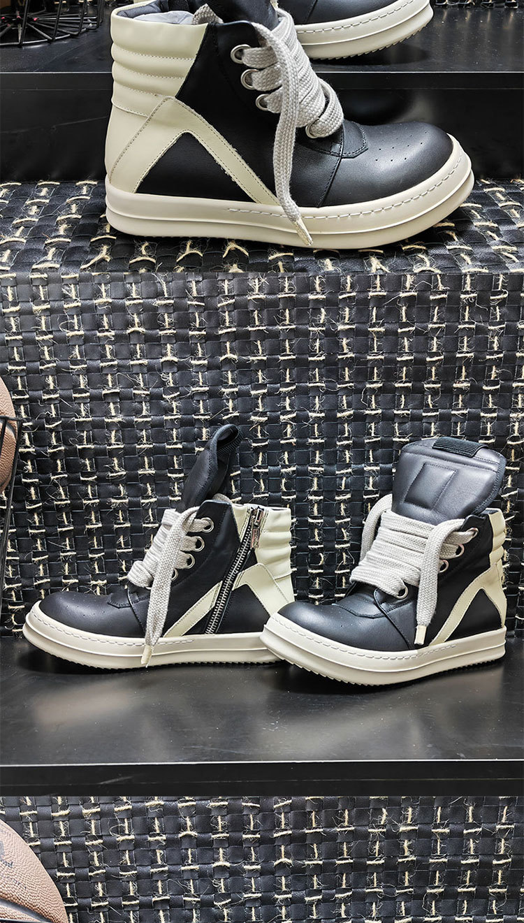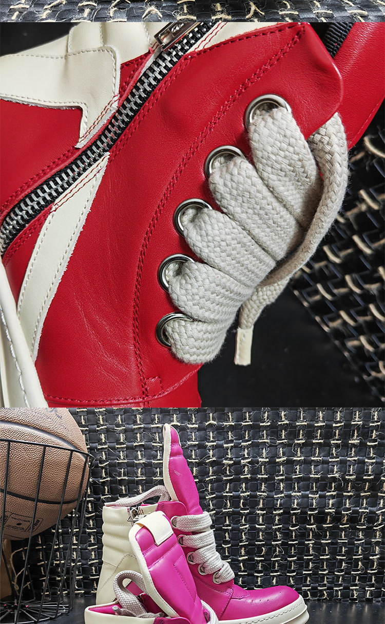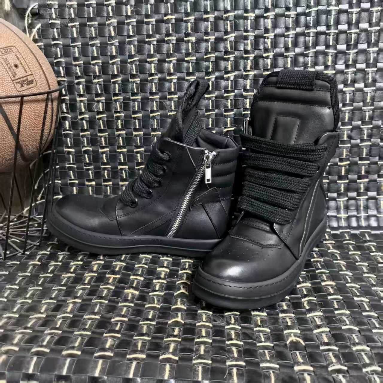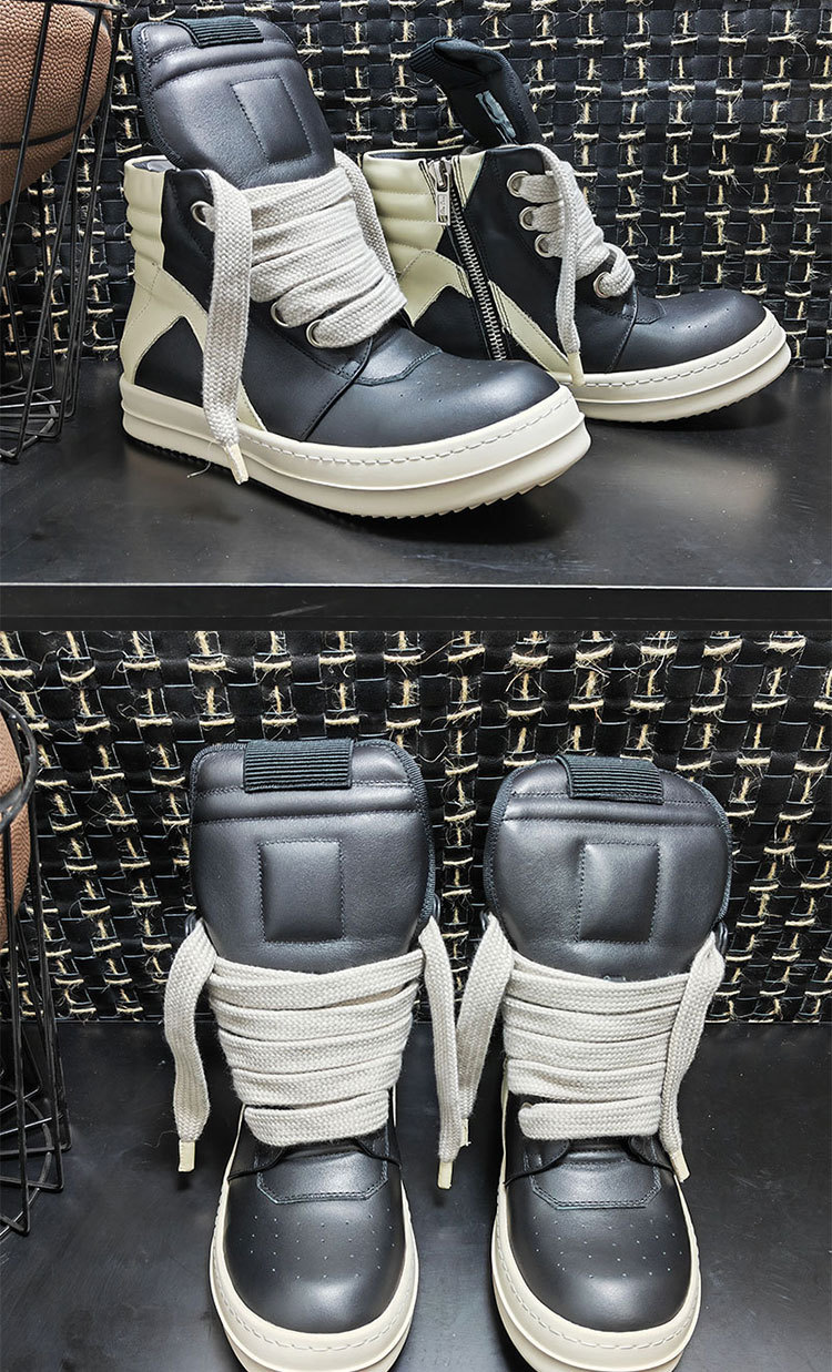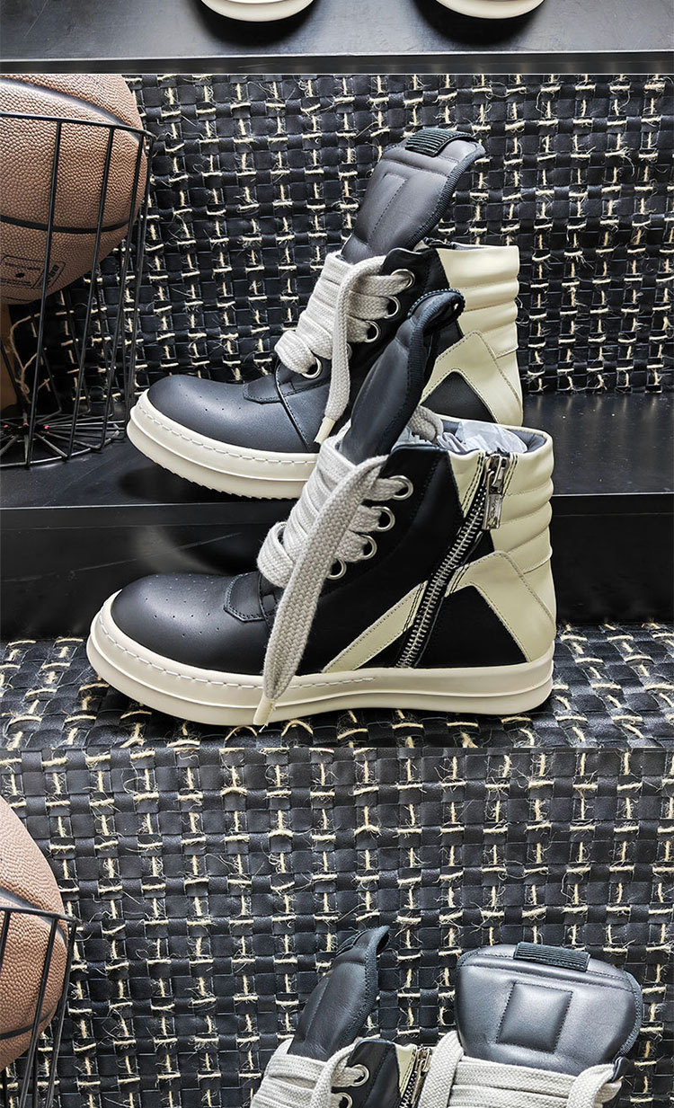 Короткие ботинки в европейском и американском стиле из Гуанчжоу, из натуральной кожи, с инвертированным треугольным вырезом, повседневные, универсальные, черно-белые, с индивидуальным дизайном, увеличивающие рост, с широкими шнурками, в парном стиле.