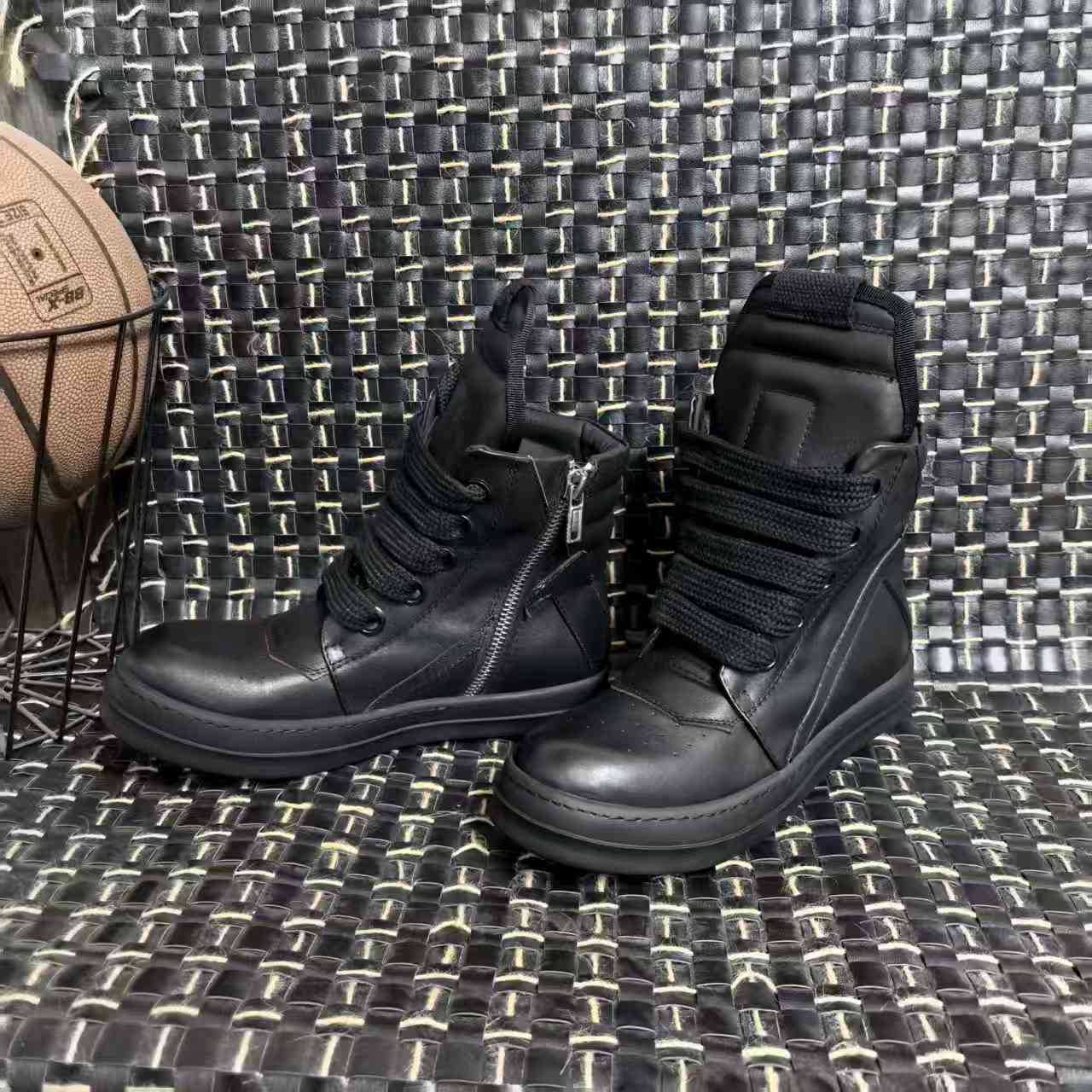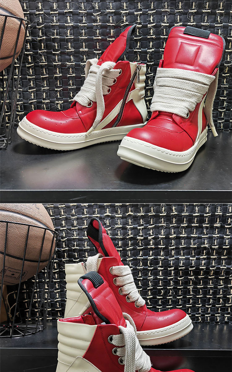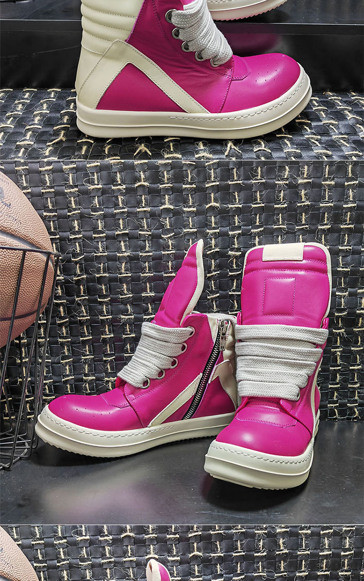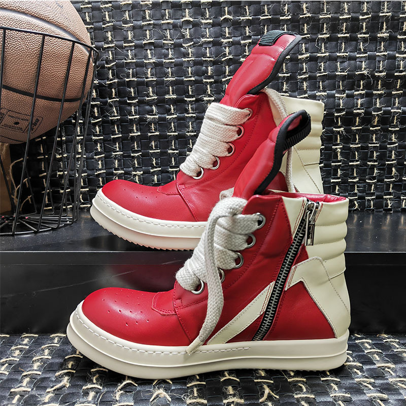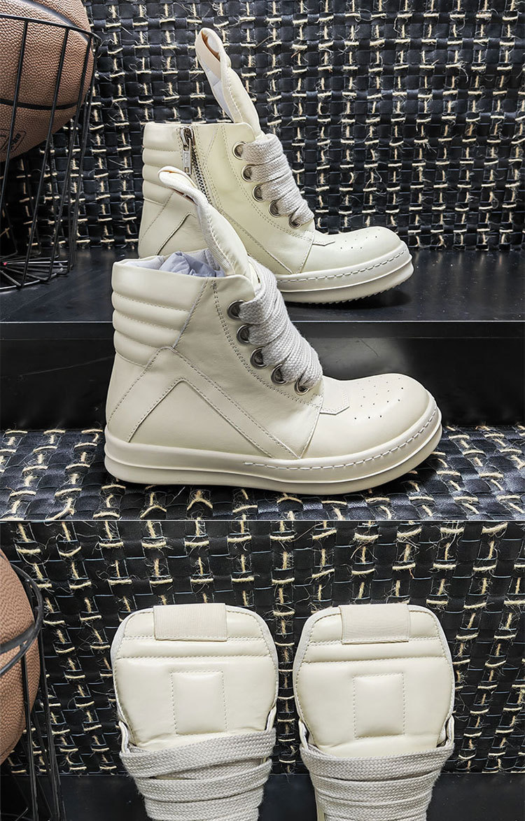 Короткие ботинки в европейском и американском стиле из Гуанчжоу, из натуральной кожи, с инвертированным треугольным вырезом, повседневные, универсальные, черно-белые, с индивидуальным дизайном, увеличивающие рост, с широкими шнурками, в парном стиле.