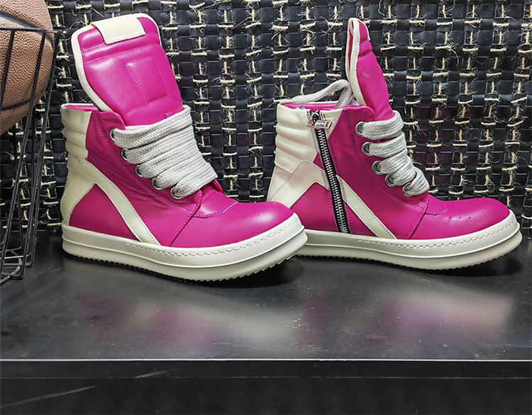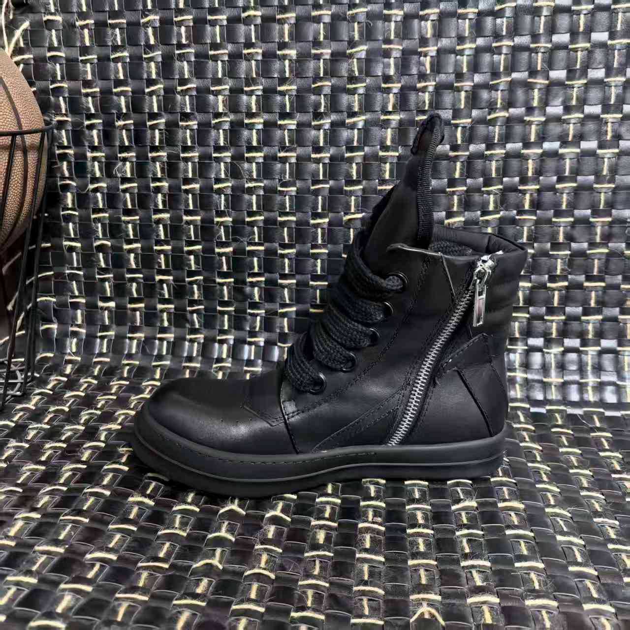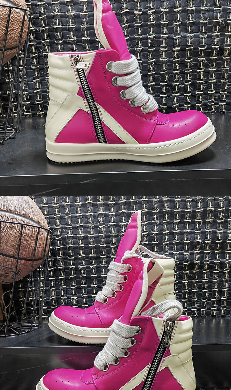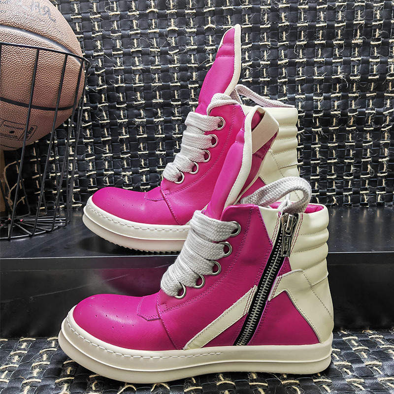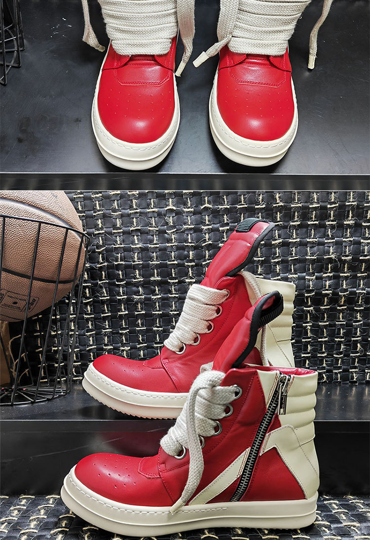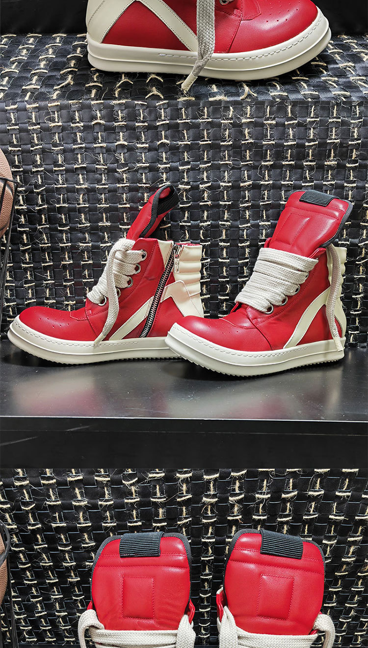 Короткие ботинки в европейском и американском стиле из Гуанчжоу, из натуральной кожи, с инвертированным треугольным вырезом, повседневные, универсальные, черно-белые, с индивидуальным дизайном, увеличивающие рост, с широкими шнурками, в парном стиле.