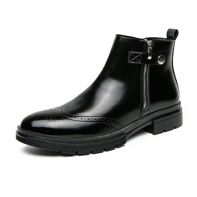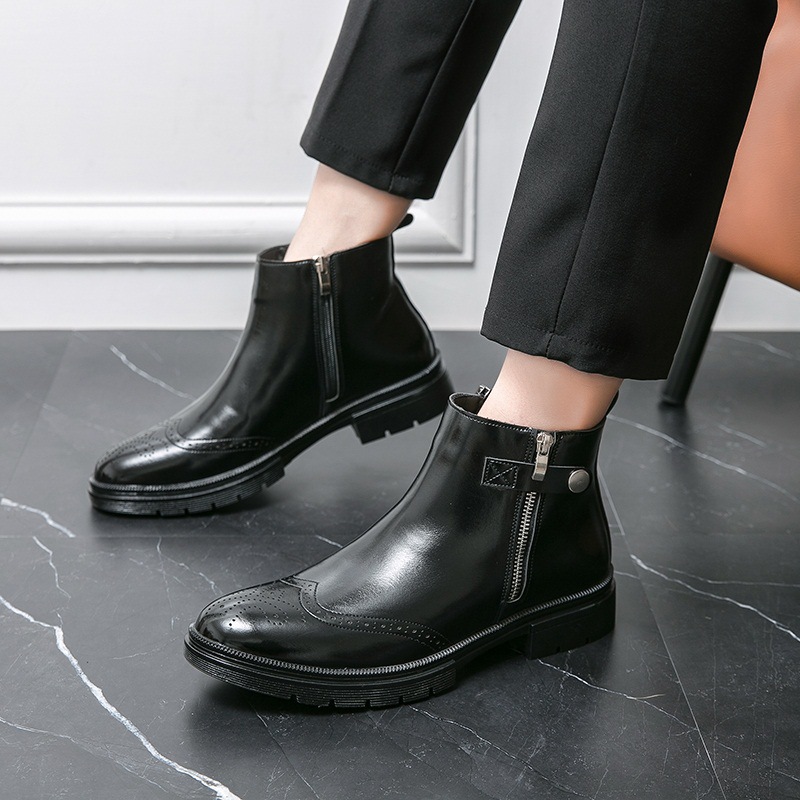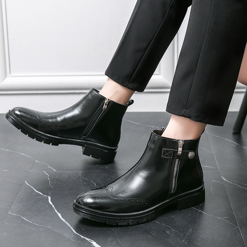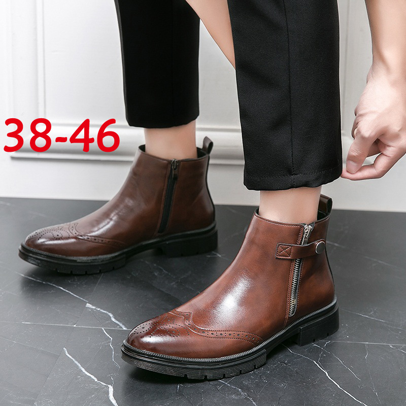 新款大码46布洛克雕花切西尔男靴侧拉链高帮皮鞋英伦休闲工装短靴