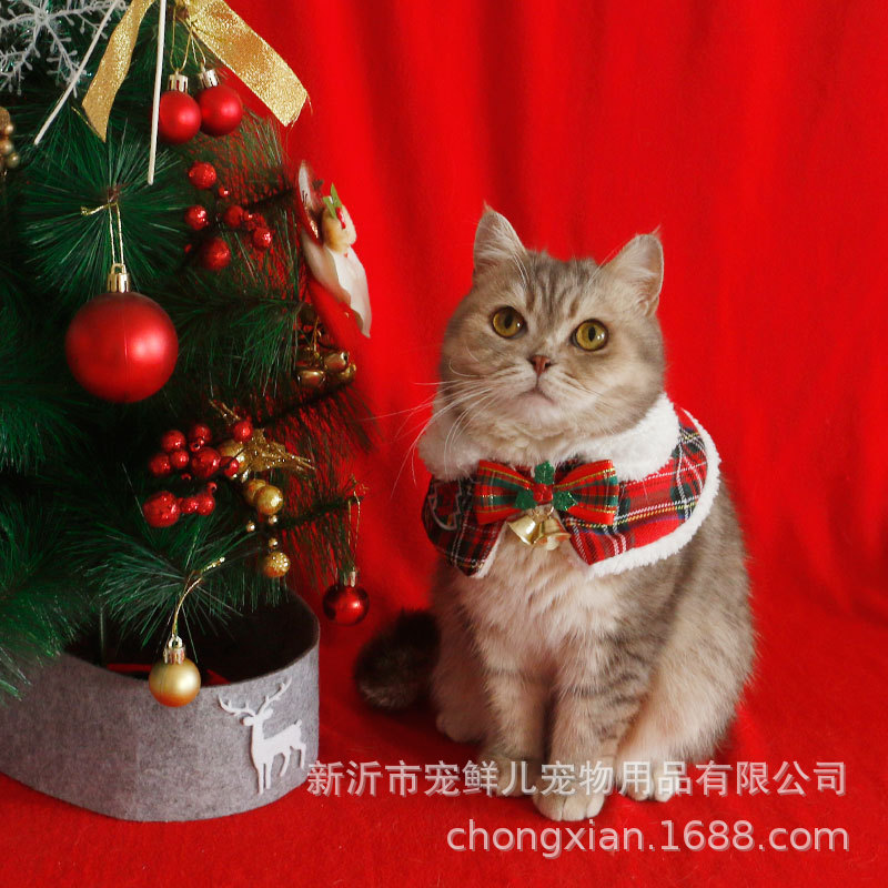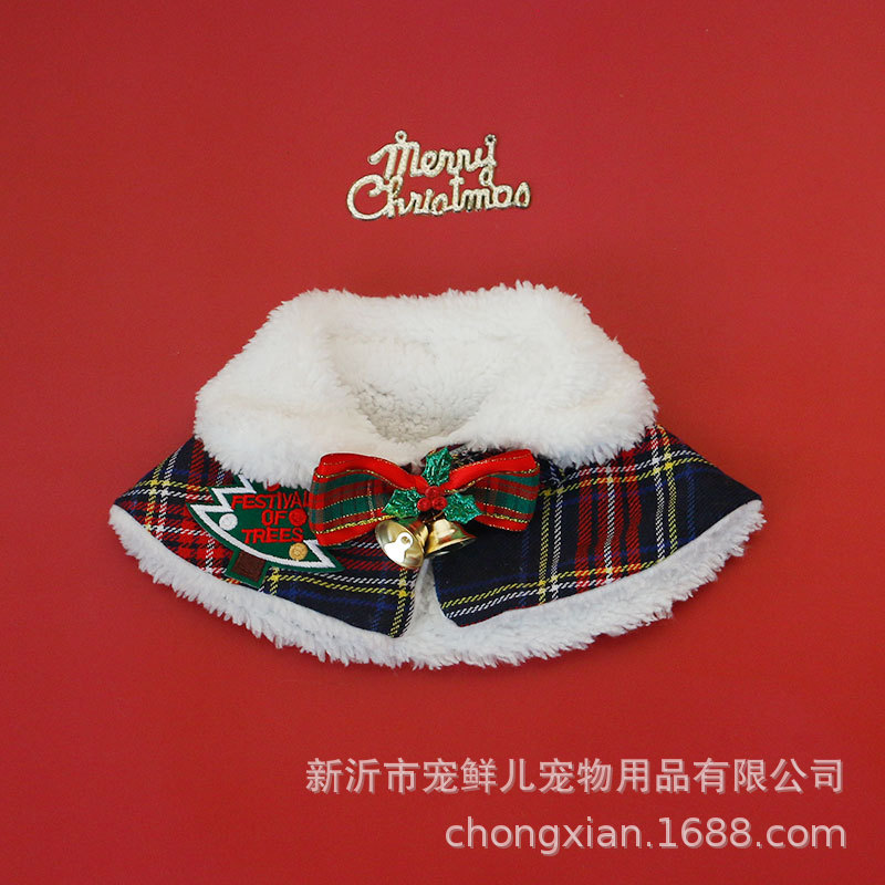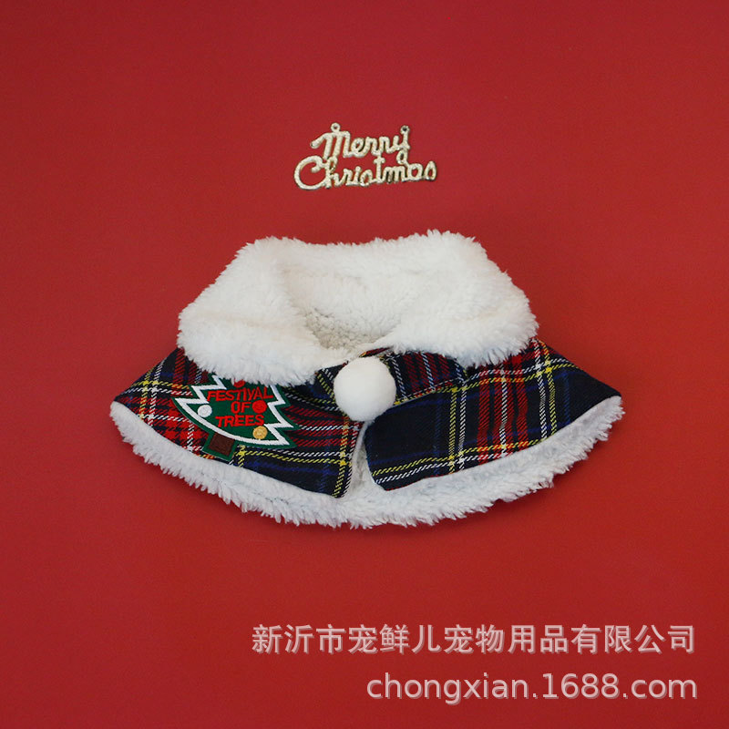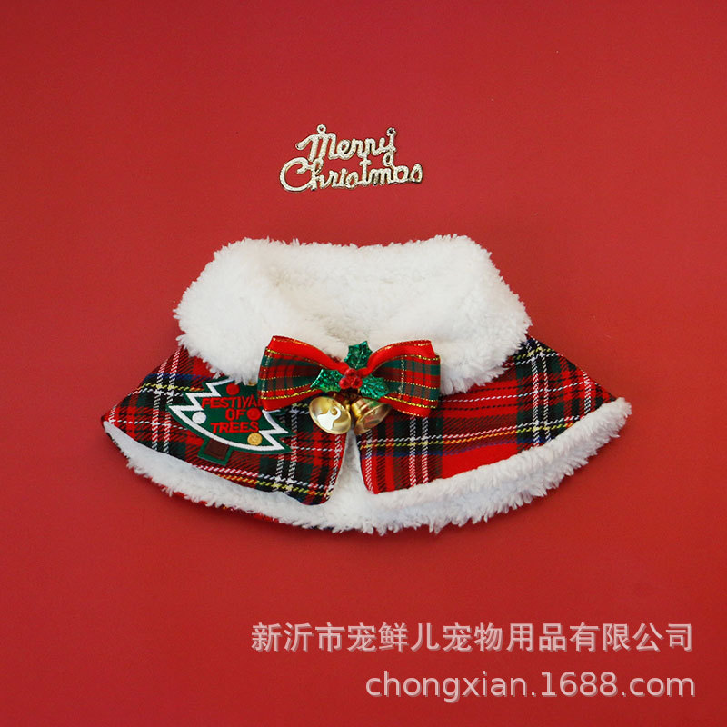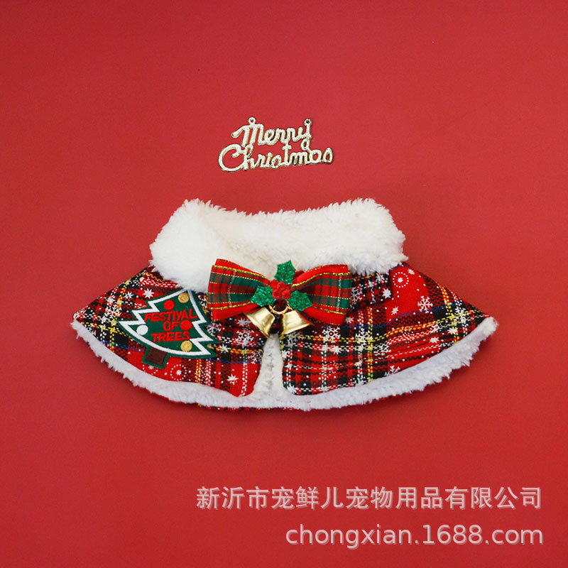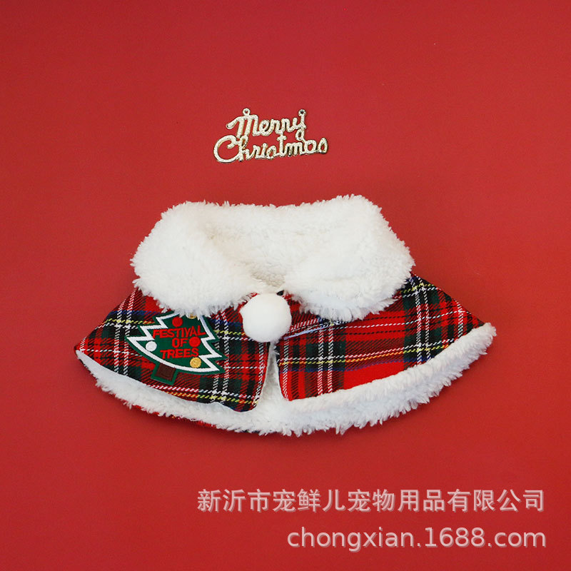 Кошка Рождественский плащ Собака Новогодний платок Шарф для домашних животных Короткая осенне-зимняя одежда Теплый плюшевый воротник
